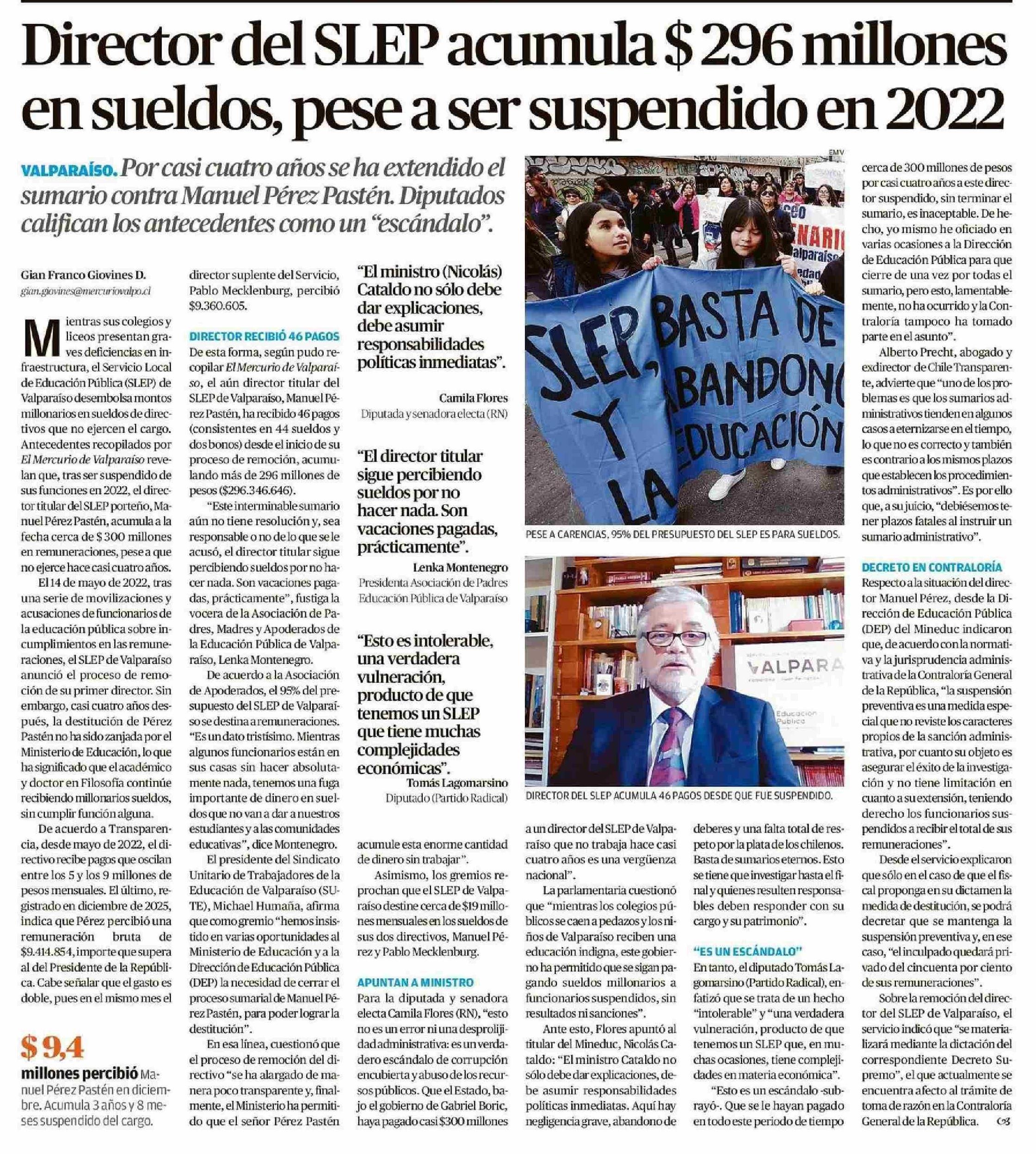 Director del SLEP acumula $ 296 millones en sueldos, pese a ser suspendido en 2022