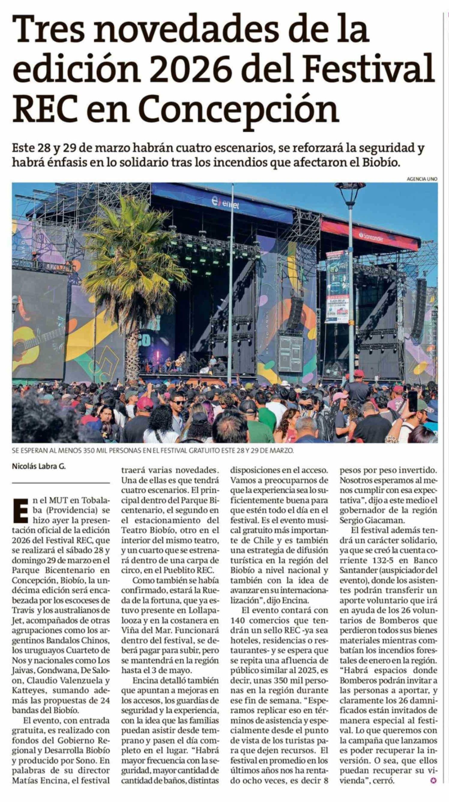Tres novedades de la edición 2026 del Festival REC en Concepción