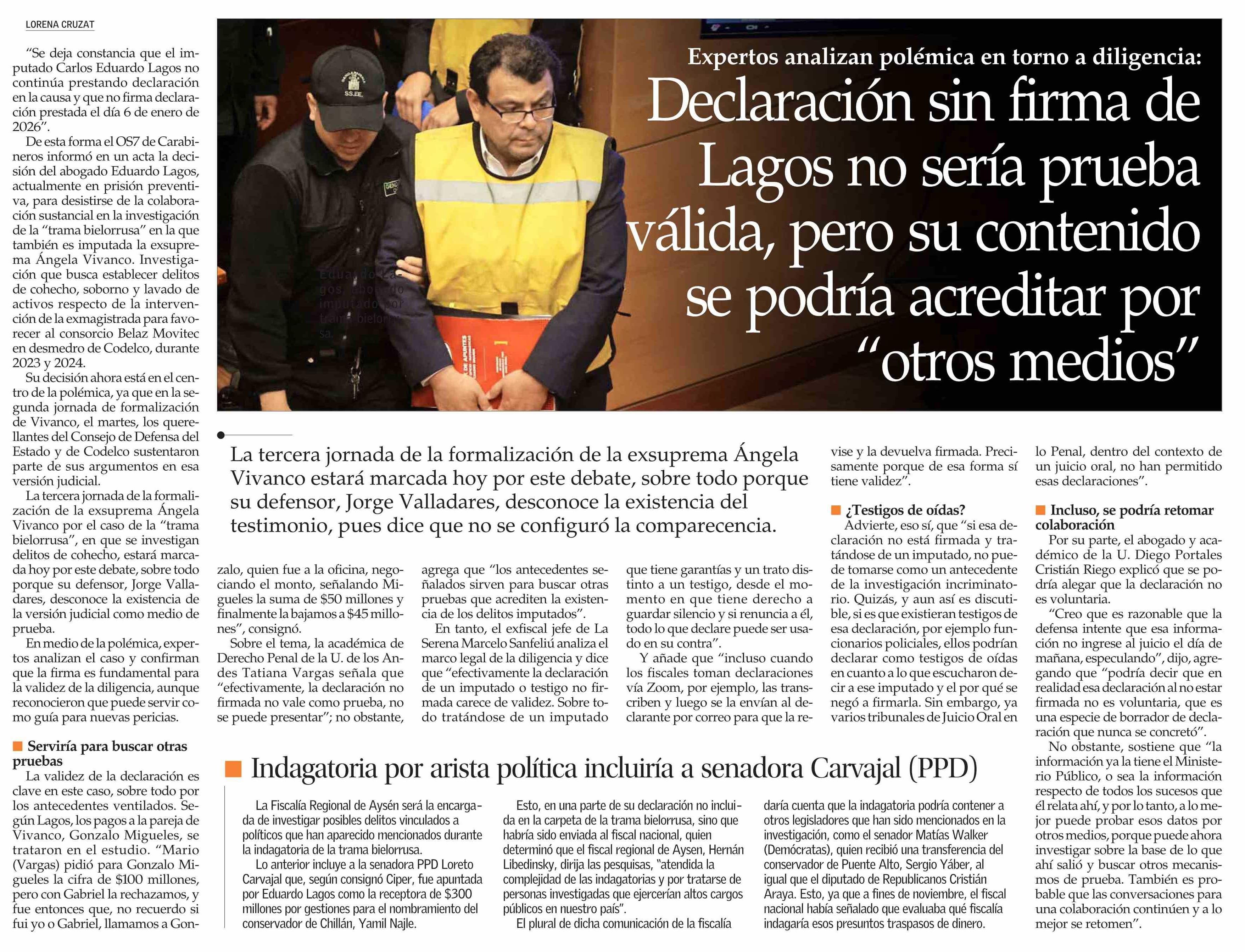 Declaración sin firma de Lagos no sería prueba válida, pero su contenido se podría acreditar por “otros medios”