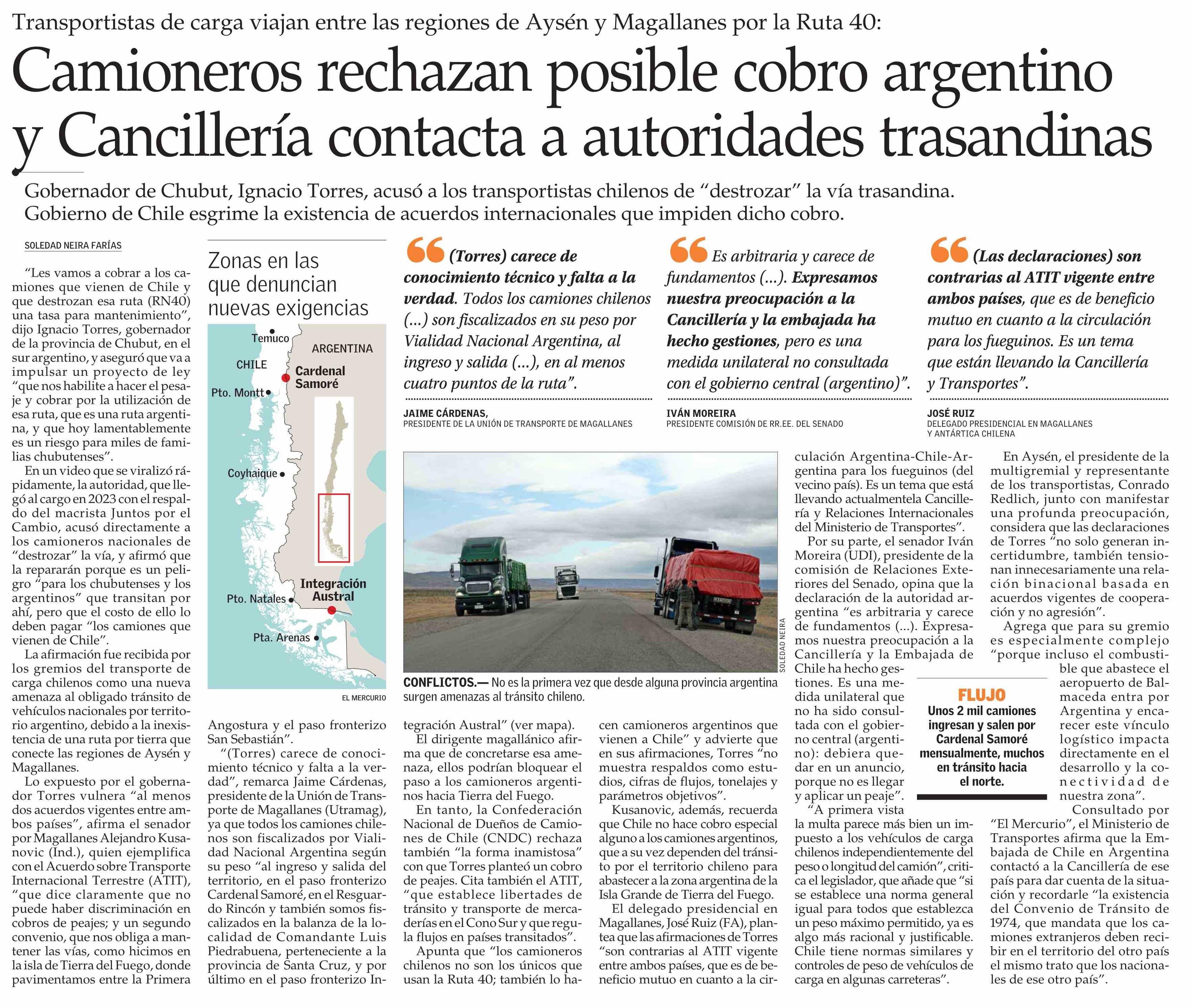 Camioneros rechazan posible cobro argentino y Cancillería contacta a autoridades trasandinas