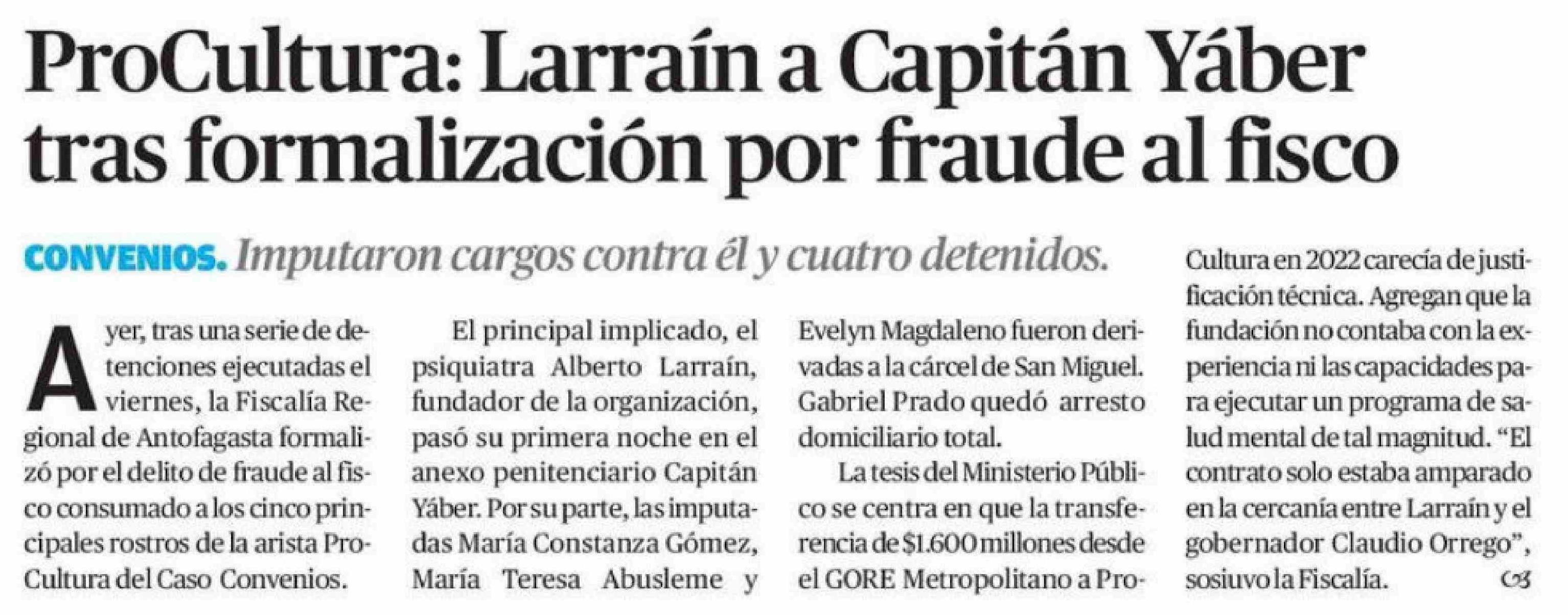 ProCultura: Larraín a Capitán Yaber tras formalización por fraude al fisco