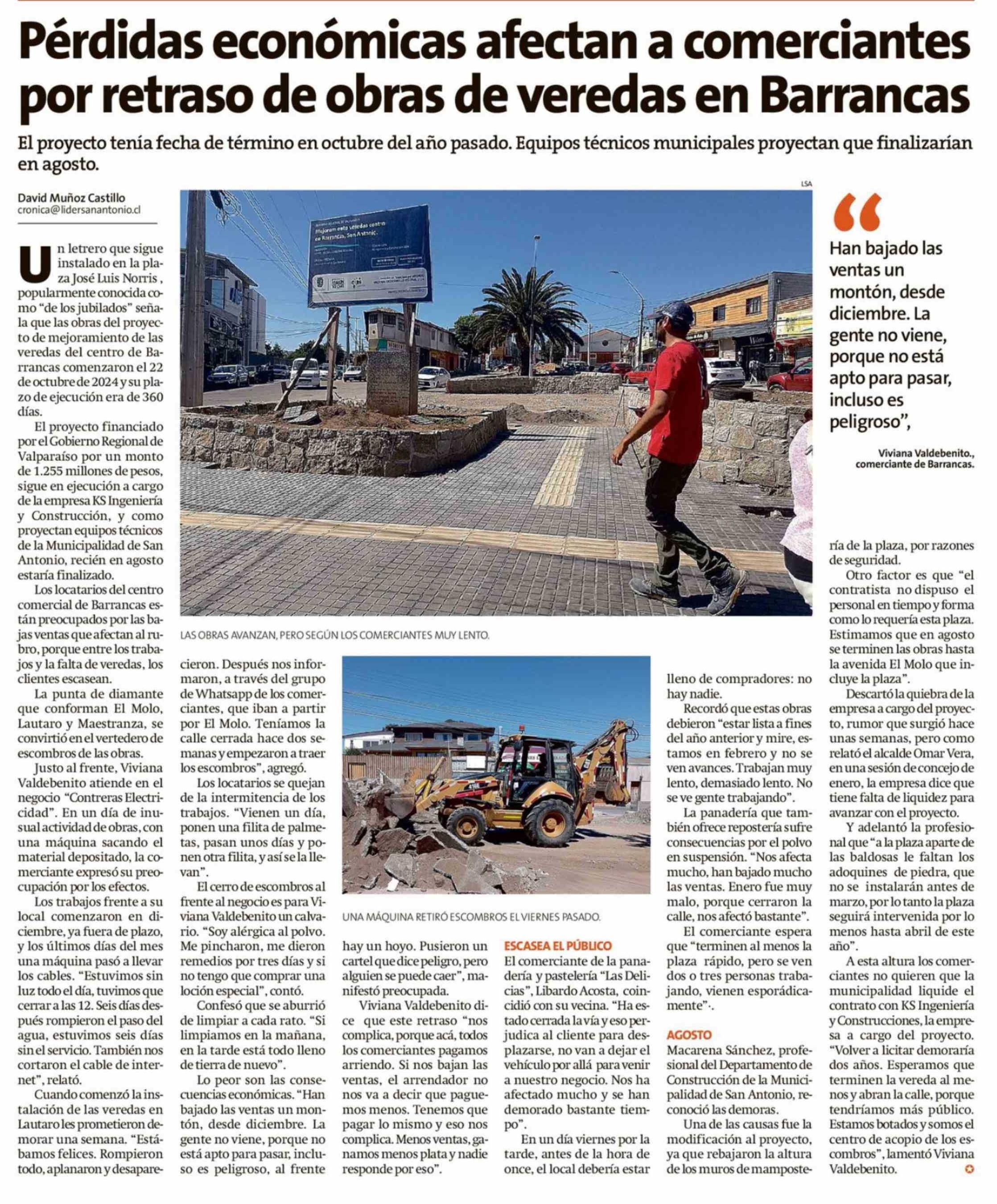 Pérdidas económicas afectan a comerciantes por retraso de obras de veredas en Barrancas