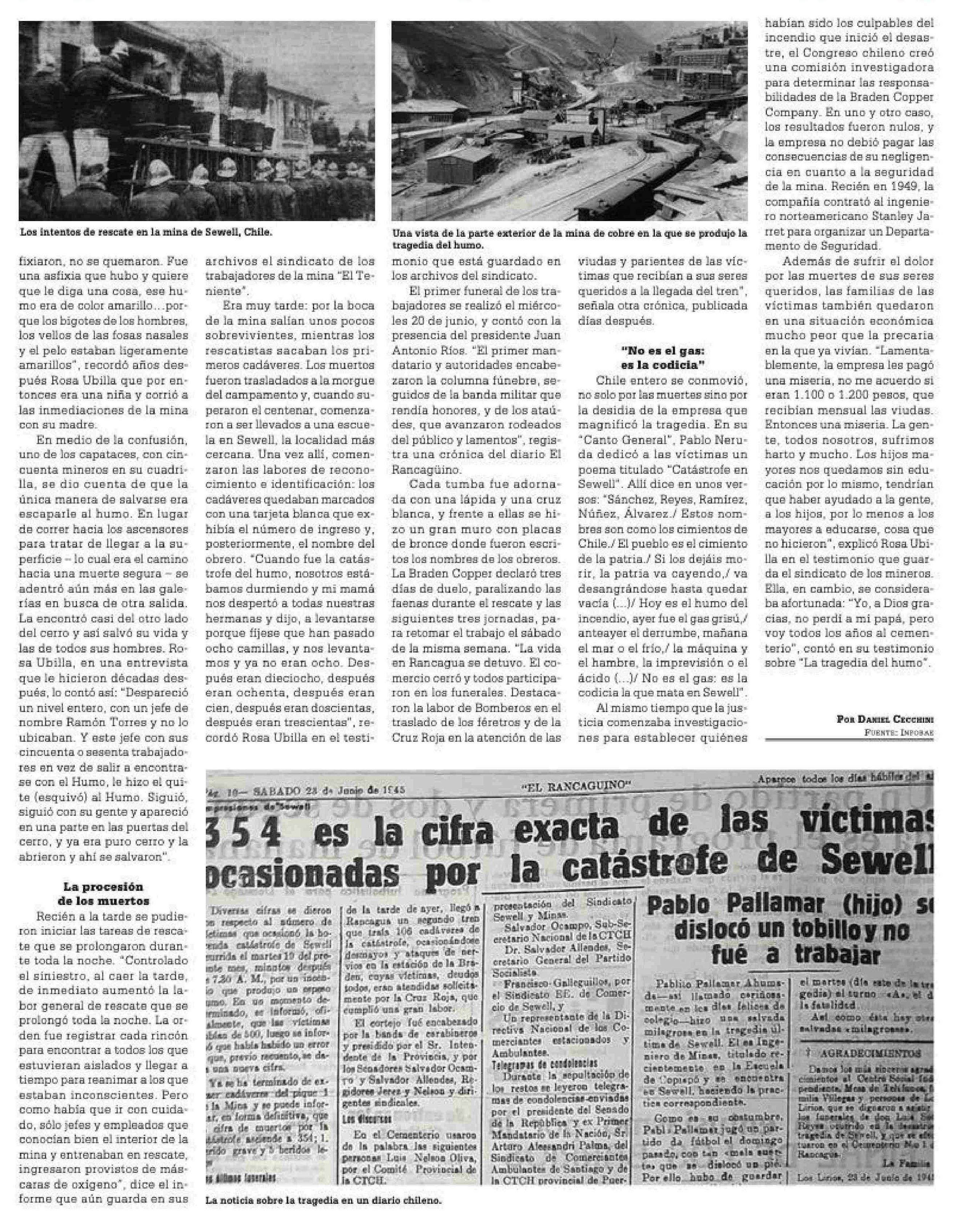 La desgracia de 365 mineros chilenos asfixiados que dejaron 150 viudas y 420 hijos sin padre