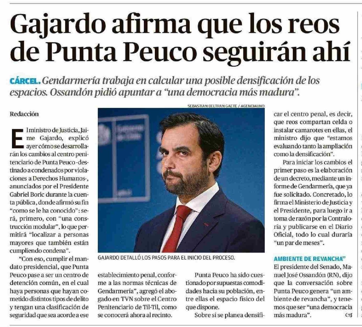Gajardo afirma que los reos de Punta Peuco seguirán ahí