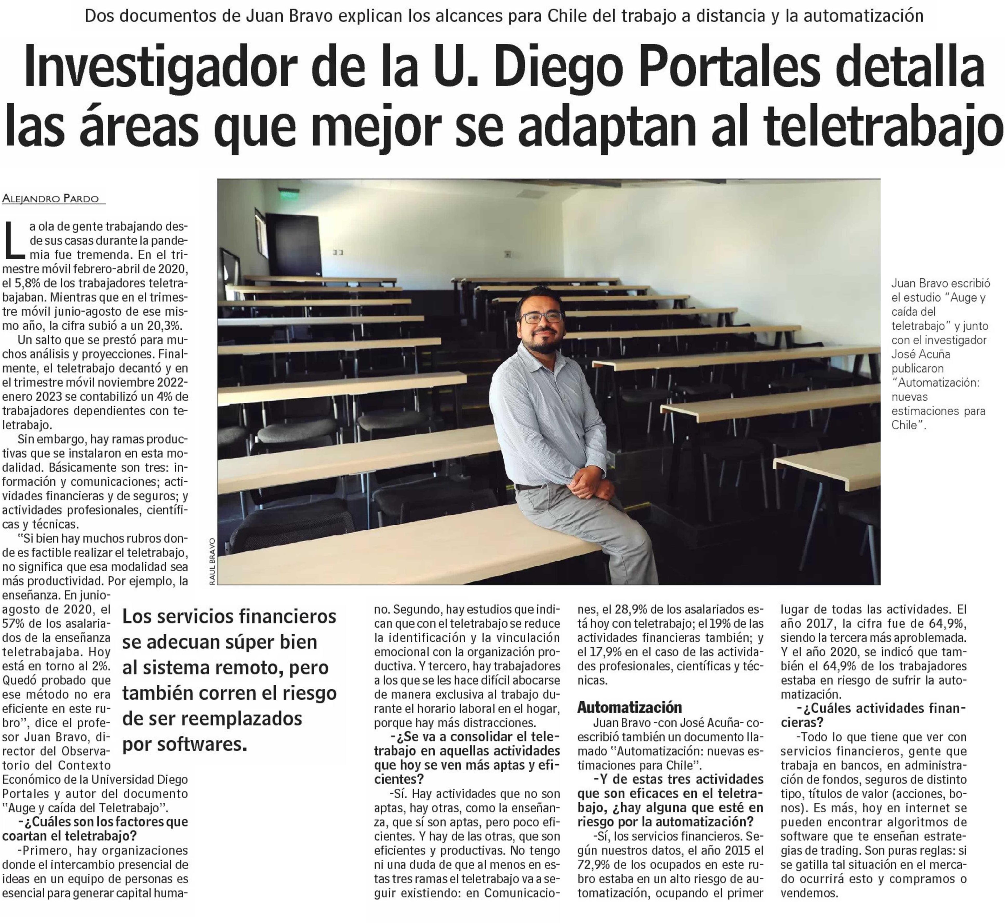 Investigador de la U. Diego Portales detalla las áreas que mejor se adaptan al teletrabajo