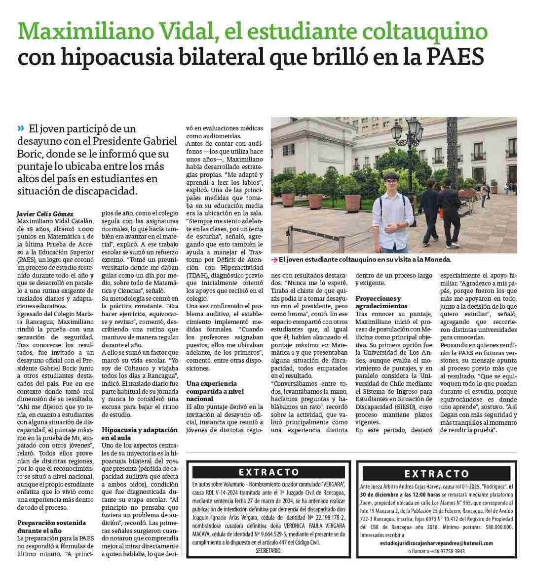 Maximiliano Vidal, el estudiante coltauquino con hipoacusia bilateral que brilló en la PAES