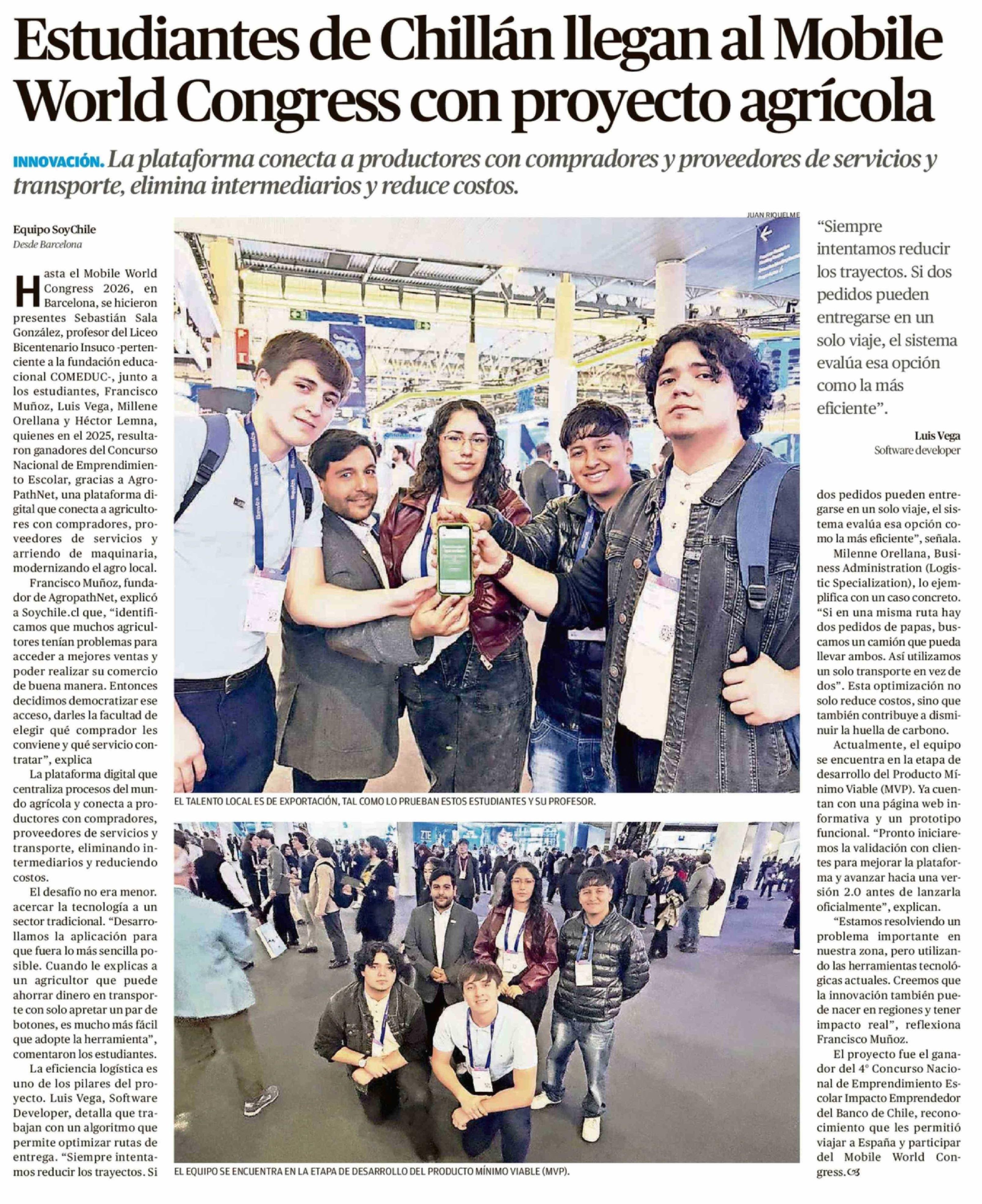 Estudiantes de Chillán llegan al Mobile World Congress con proyecto agrícola