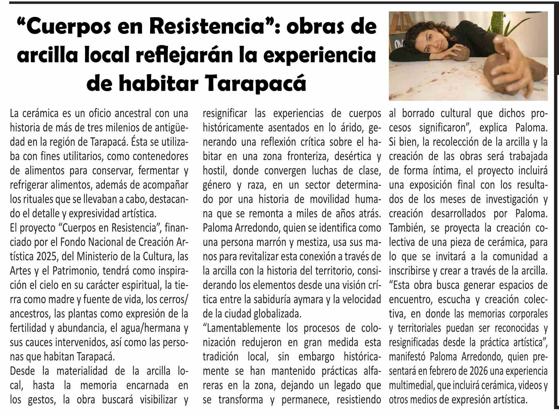 “Cuerpos en Resistencia”: obras de arcilla local reflejarán la experiencia de habitar Tarapacá