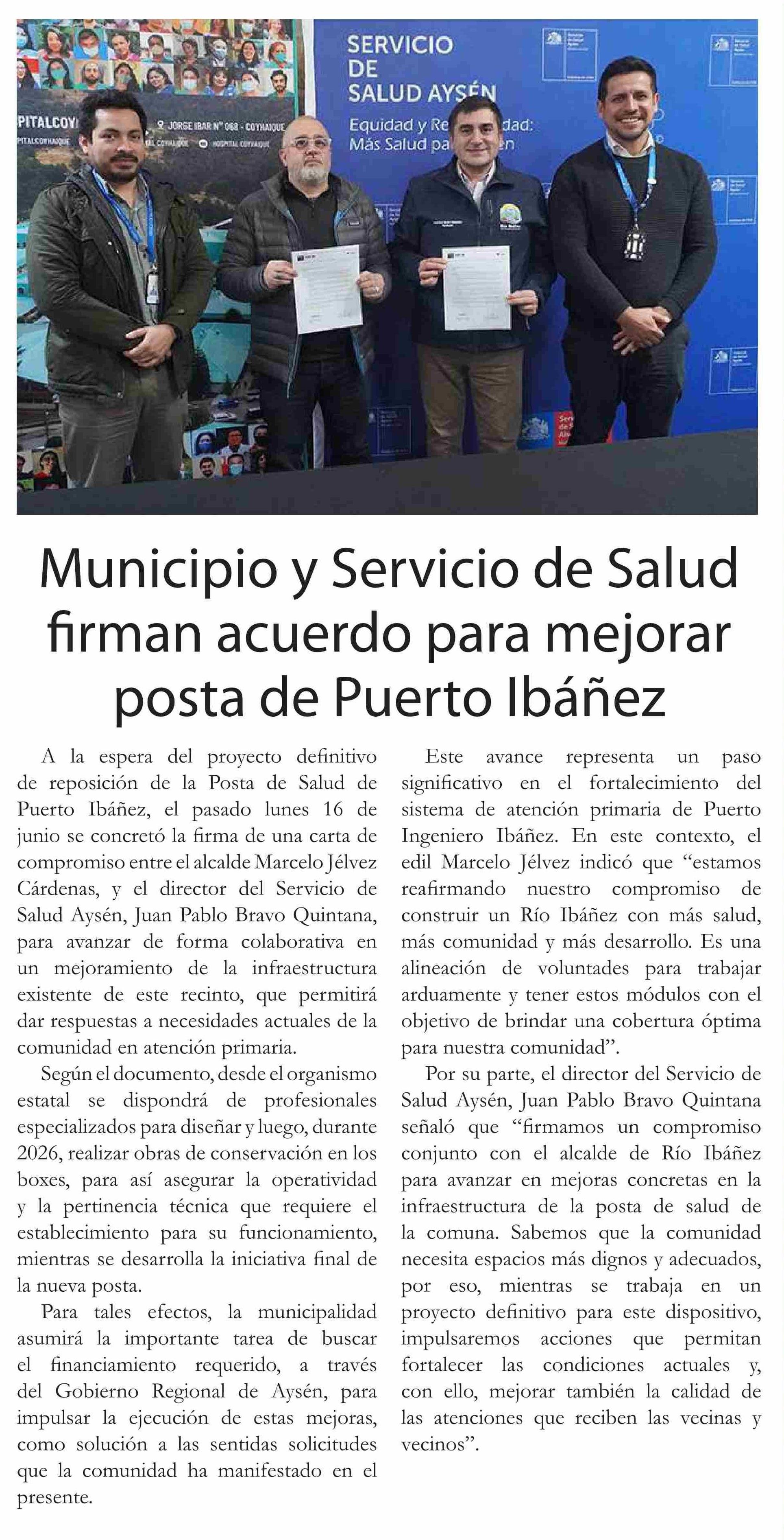 Municipio y Servicio de Salud firman acuerdo para mejorar posta de Puerto Ibáñez