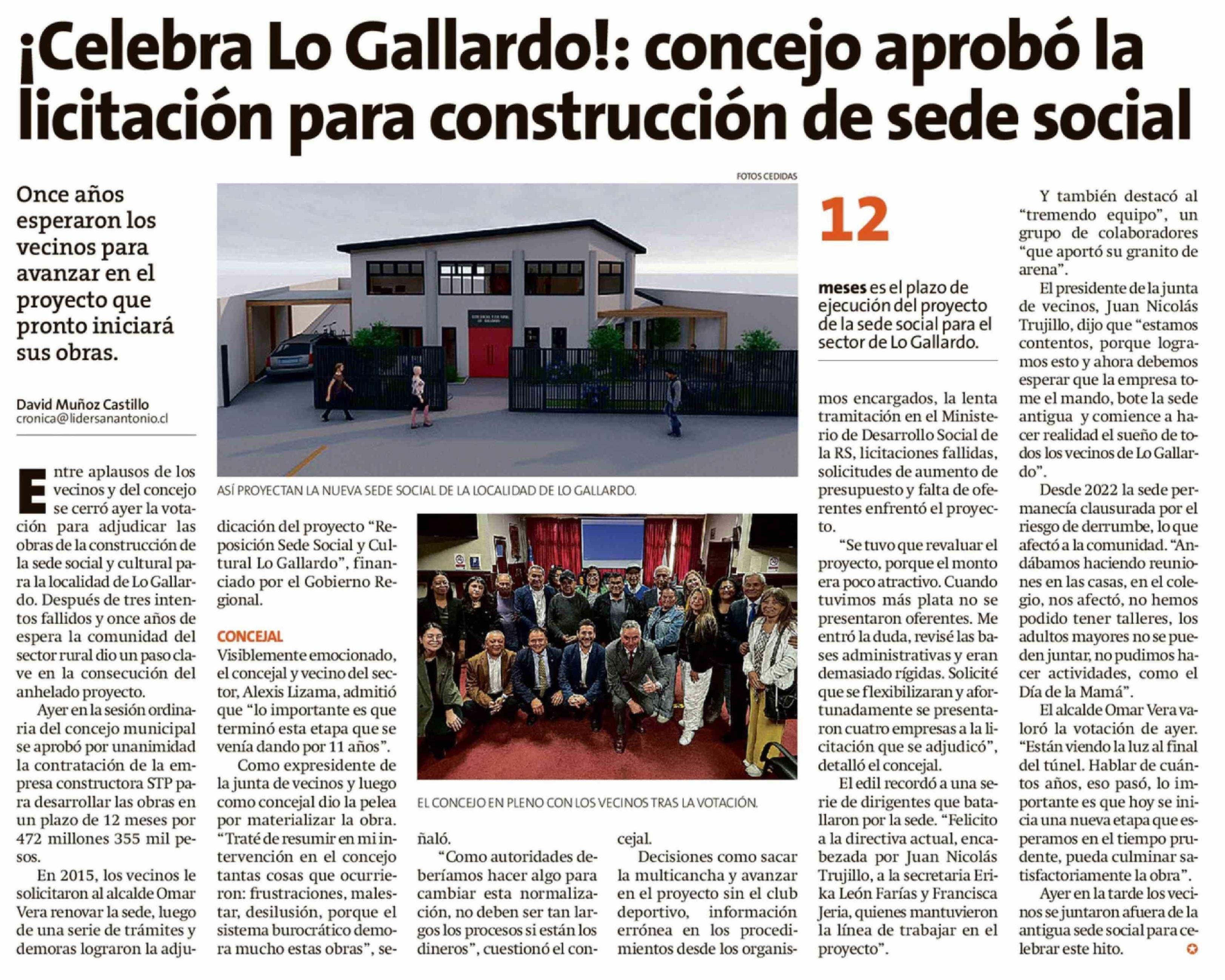 Celebra Lo Gallardo !: concejo aprobó la licitación para construcción de sede social