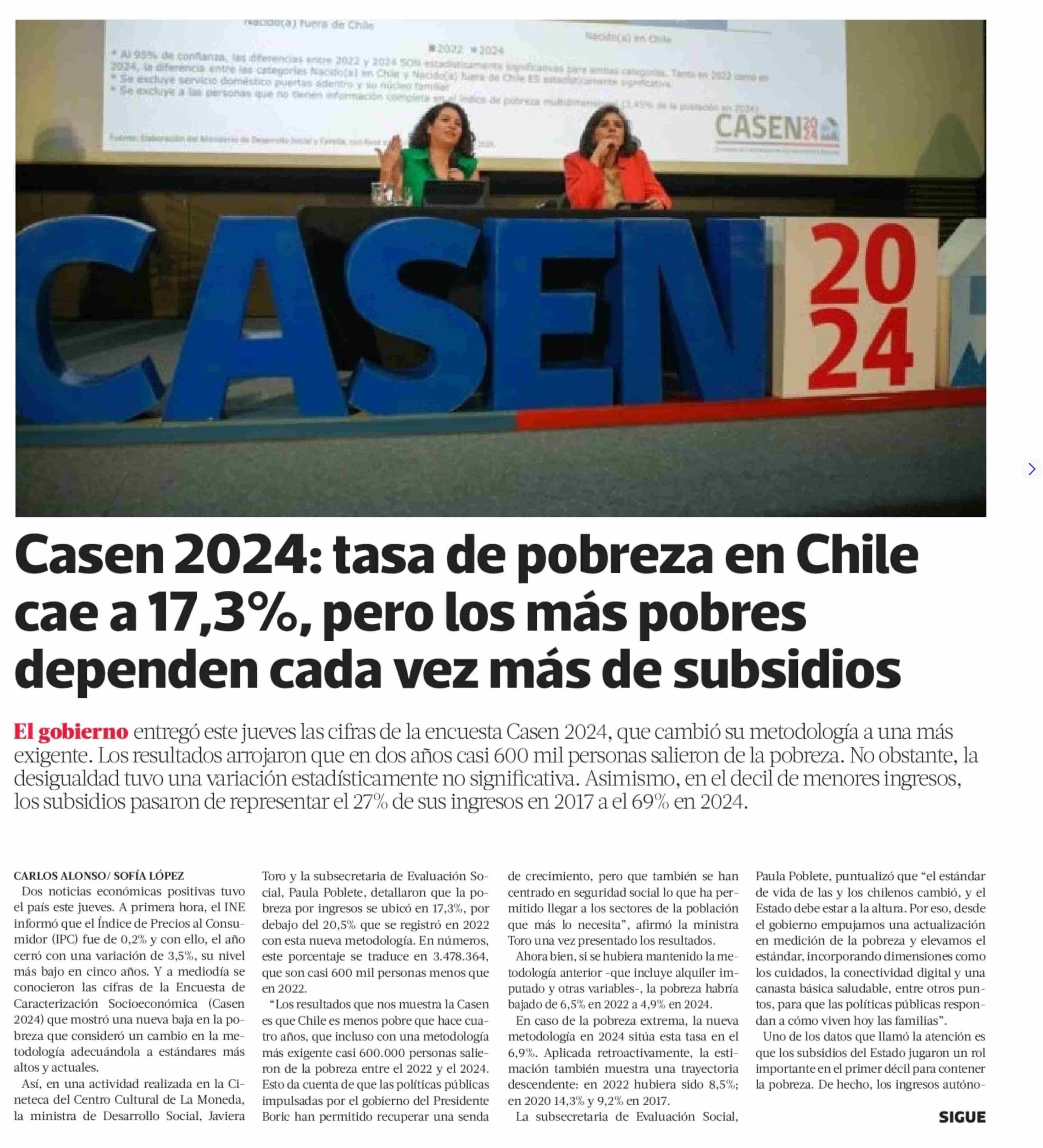 Casen 2024: tasa de pobreza en Chile cae a 17,3%, pero los más pobres dependen cada vez más de subsidios