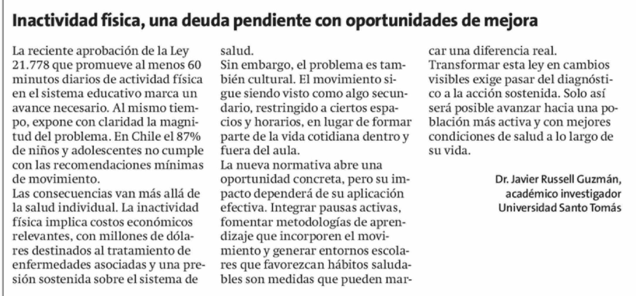 Cartas: Inactividad física, una deuda pendiente con oportunidades de mejora