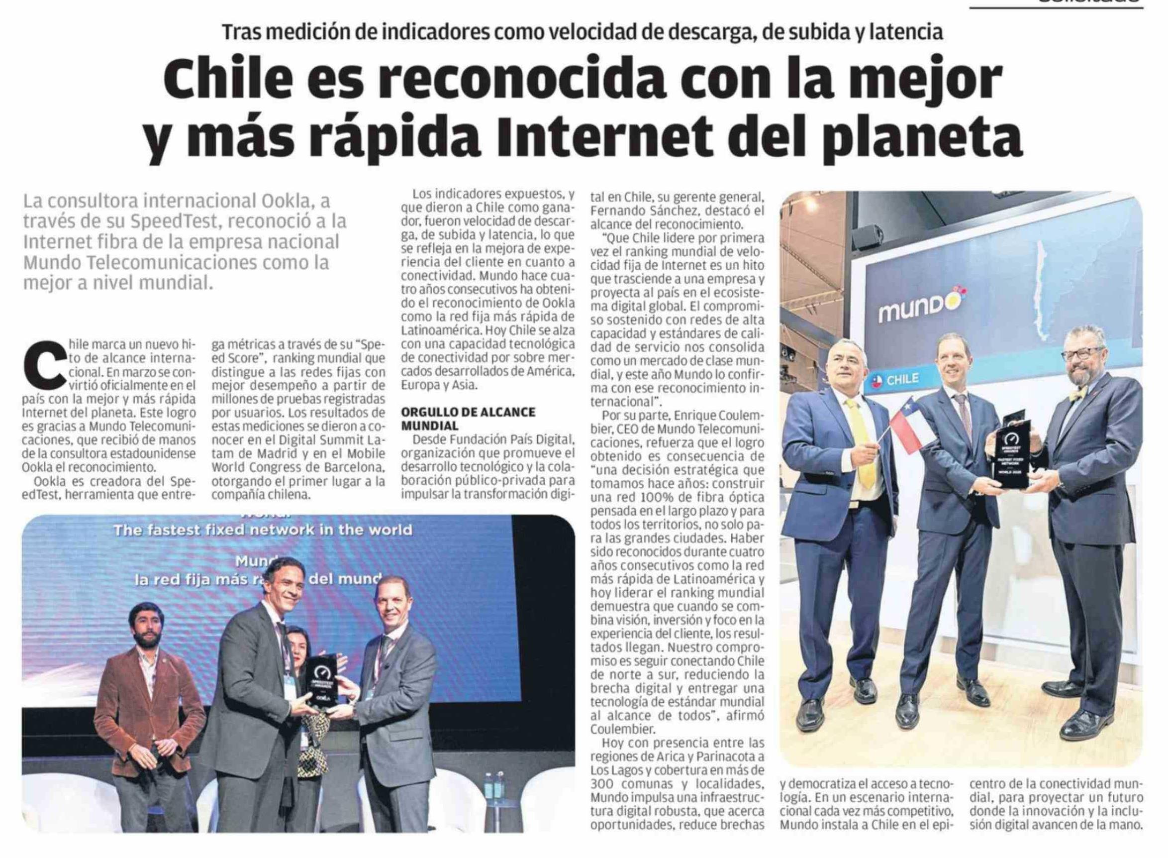 Chile es reconocida con la mejor y más rápida Internet del planeta
