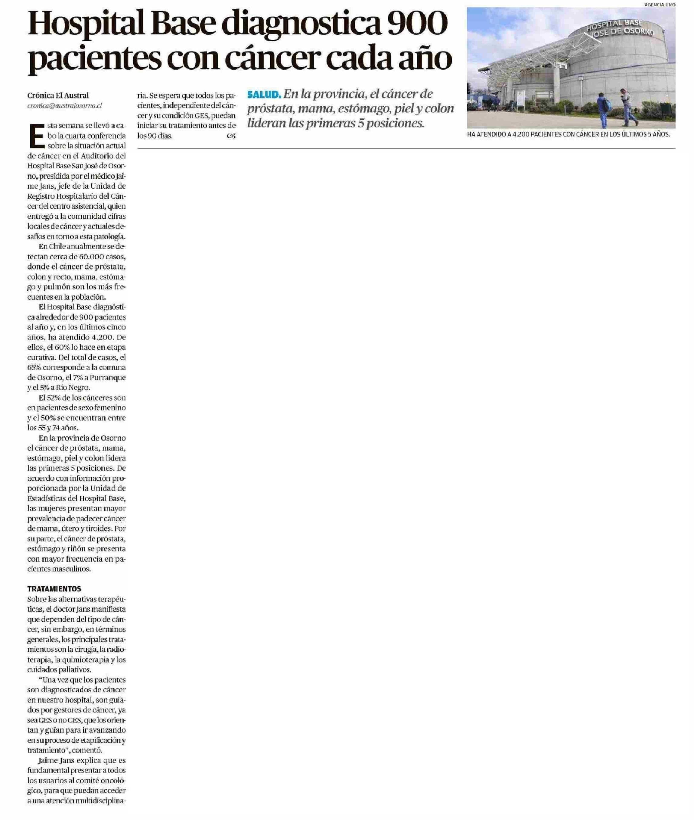 Hospital Base diagnostica 900 pacientes con cáncer cada año