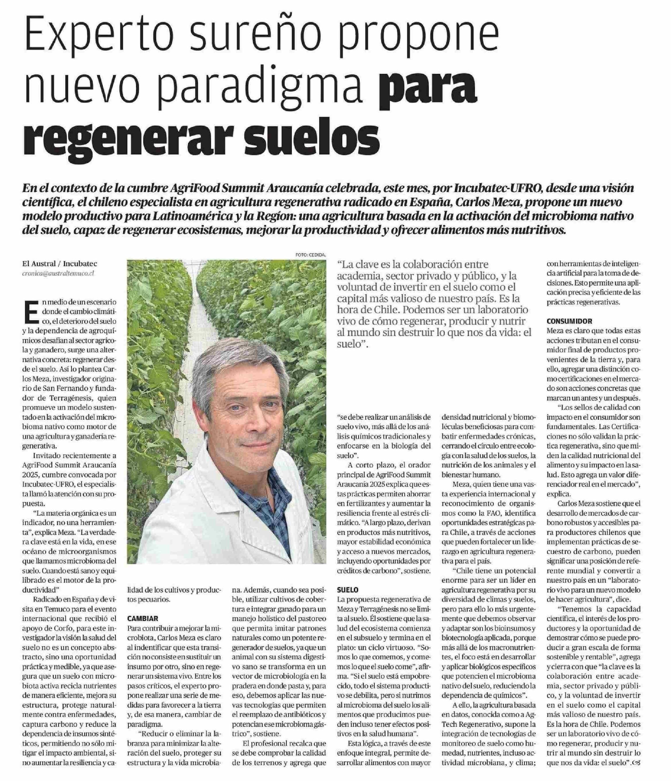 Experto sureño propone nuevo paradigma para regenerar suelos