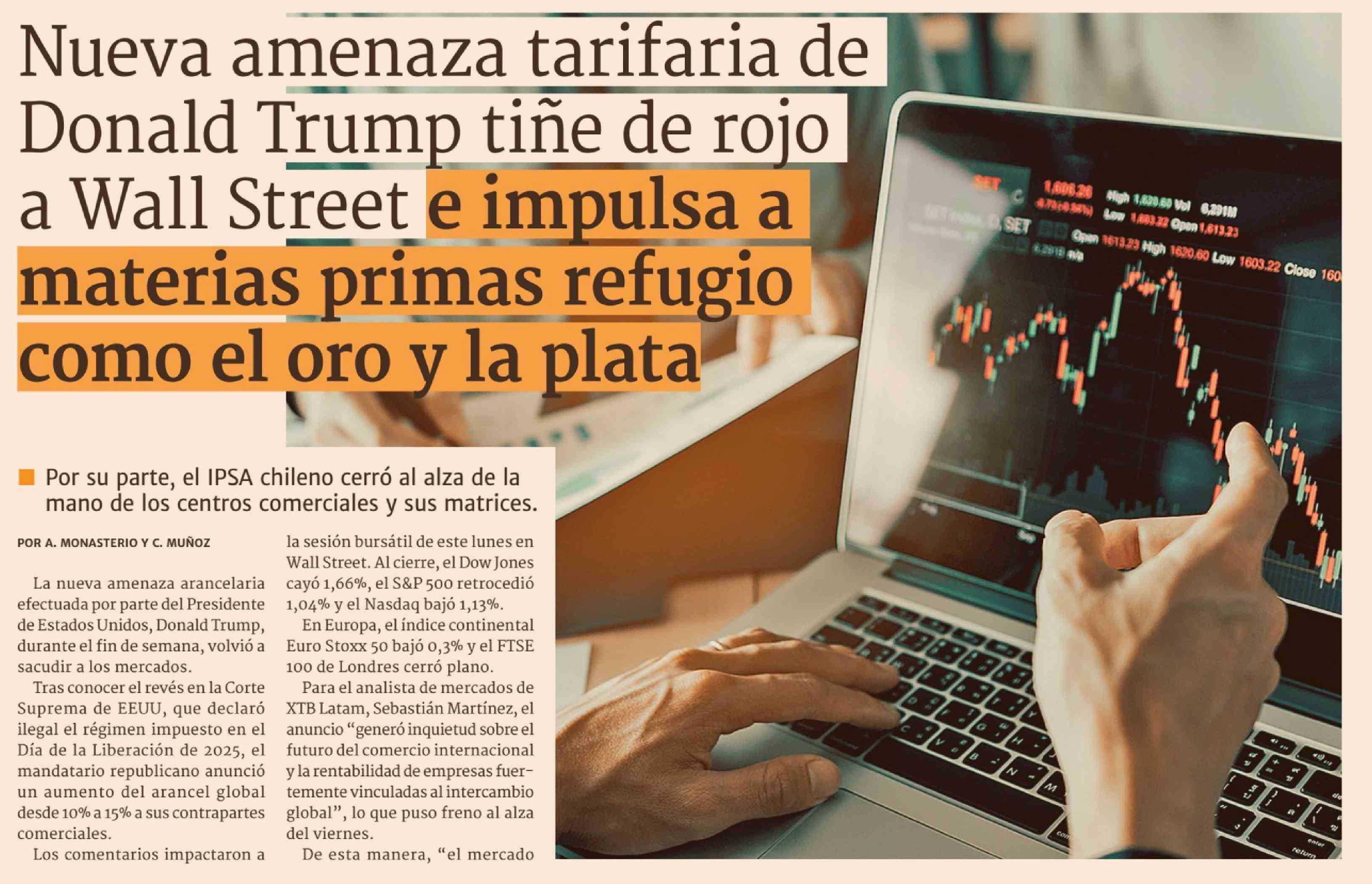 Nueva amenaza tarifaria de Donald Trump tiñe de rojo a Wall Street e impulsa a materias primas refugio como el oro y la plata