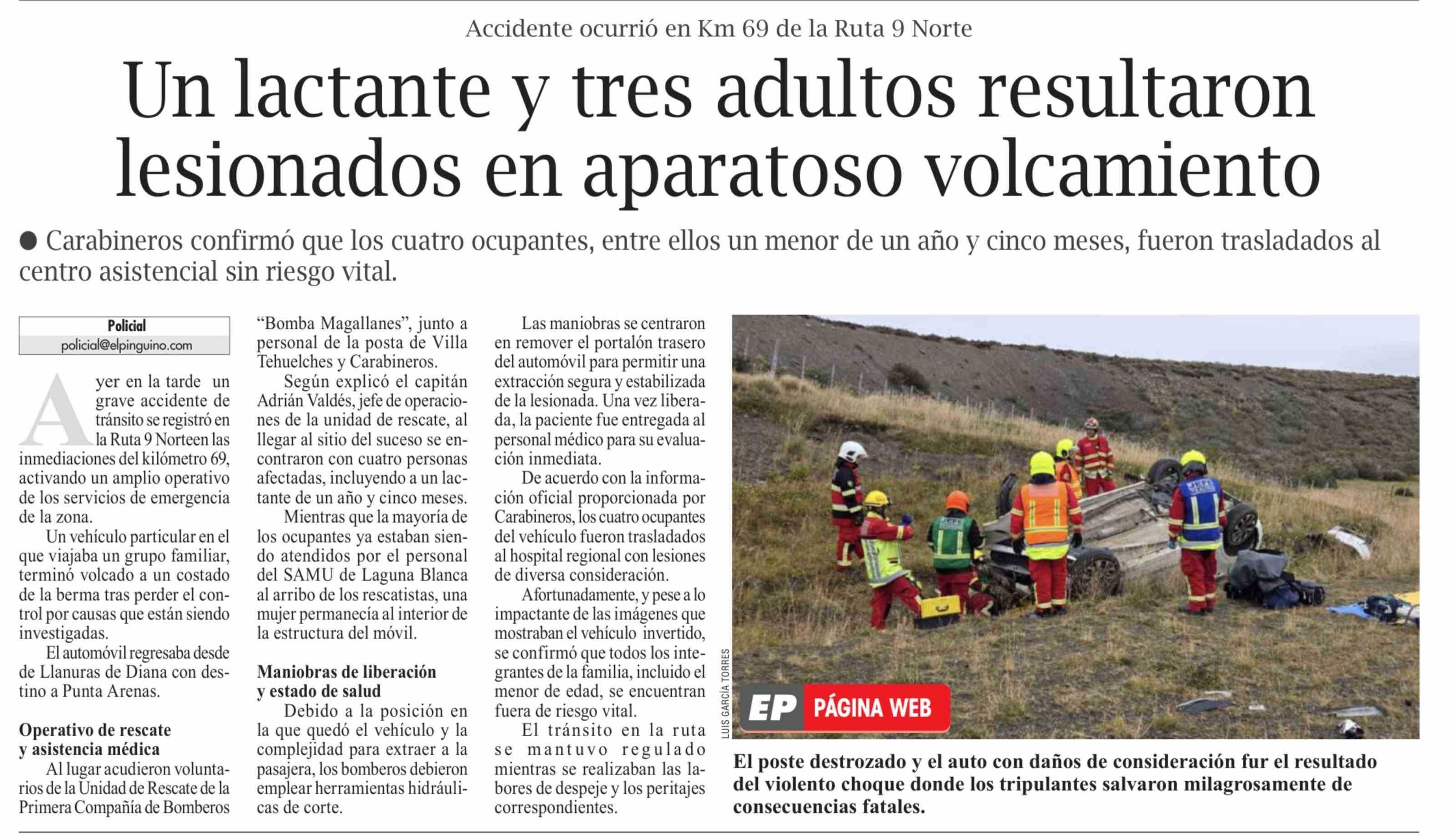Un lactante y tres adultos resultaron lesionados en aparatoso volcamiento