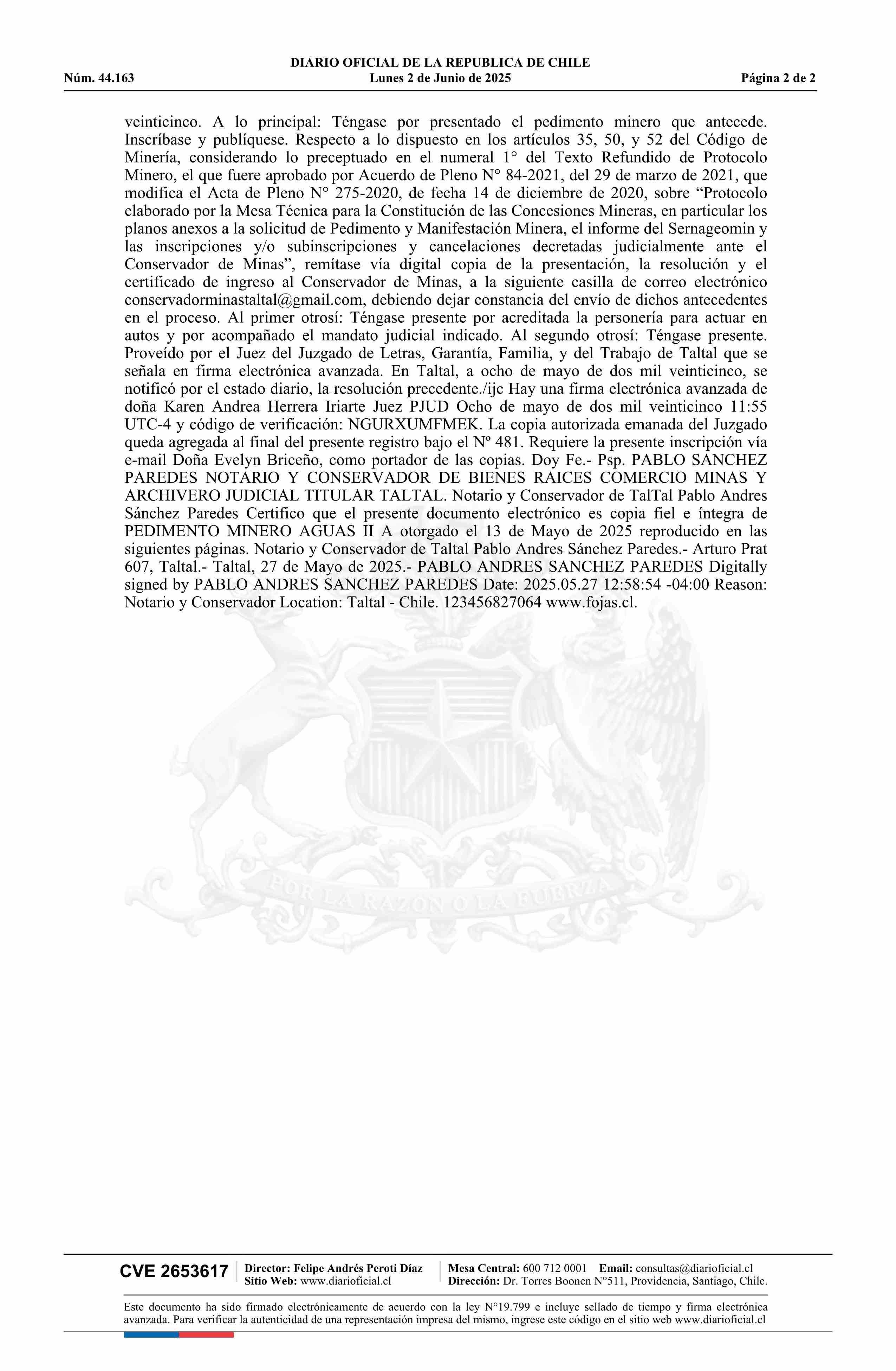 DIARIO OFICIAL CHILE - BOLETÍN OFICIAL DE MINERÍA (DIARIO OFICIAL CHILE – BOM – PEDIMENTOS MINEROS)