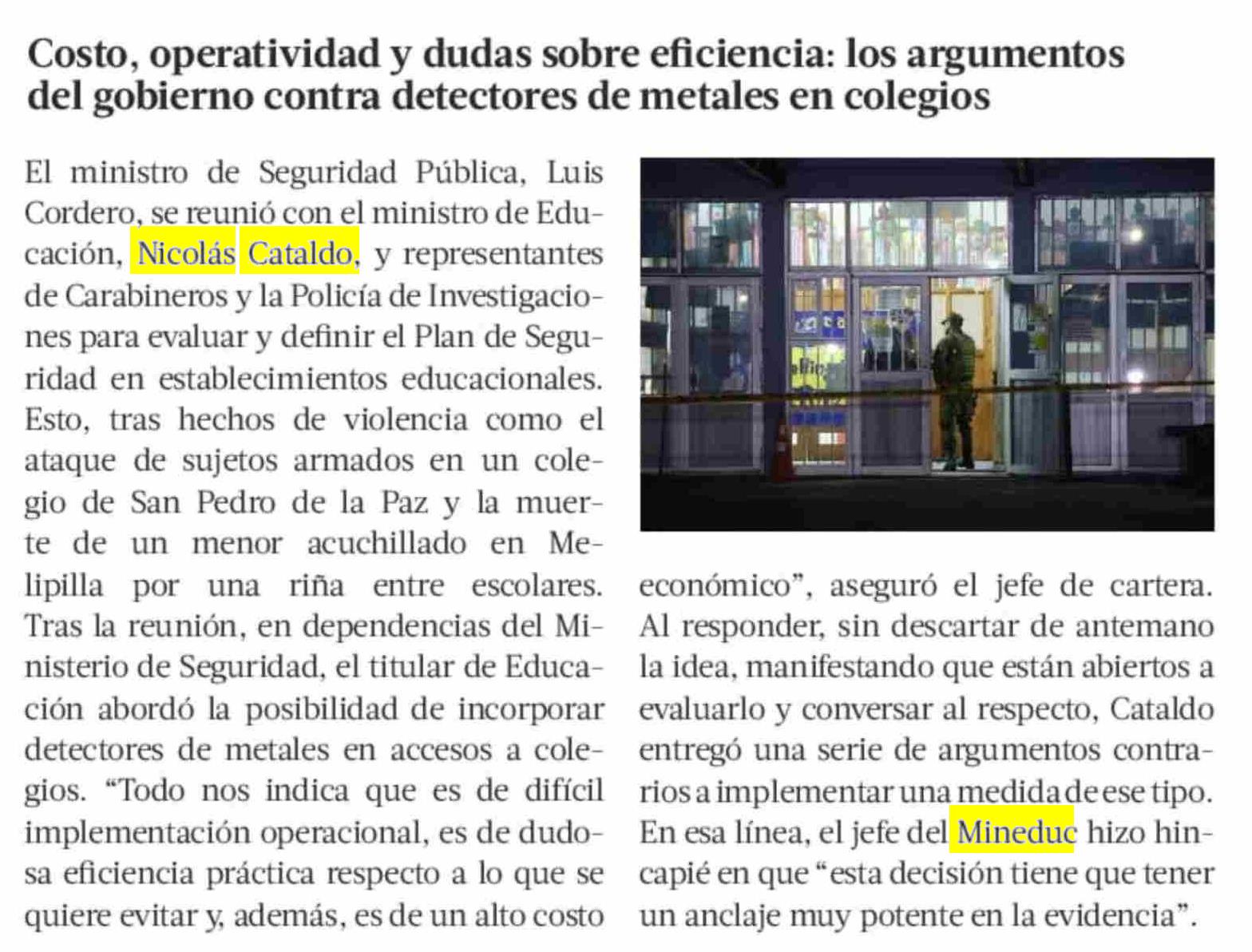 Costo, operatividad y dudas sobre eficiencia: los argumentos del gobierno contra detectores de metales en colegios