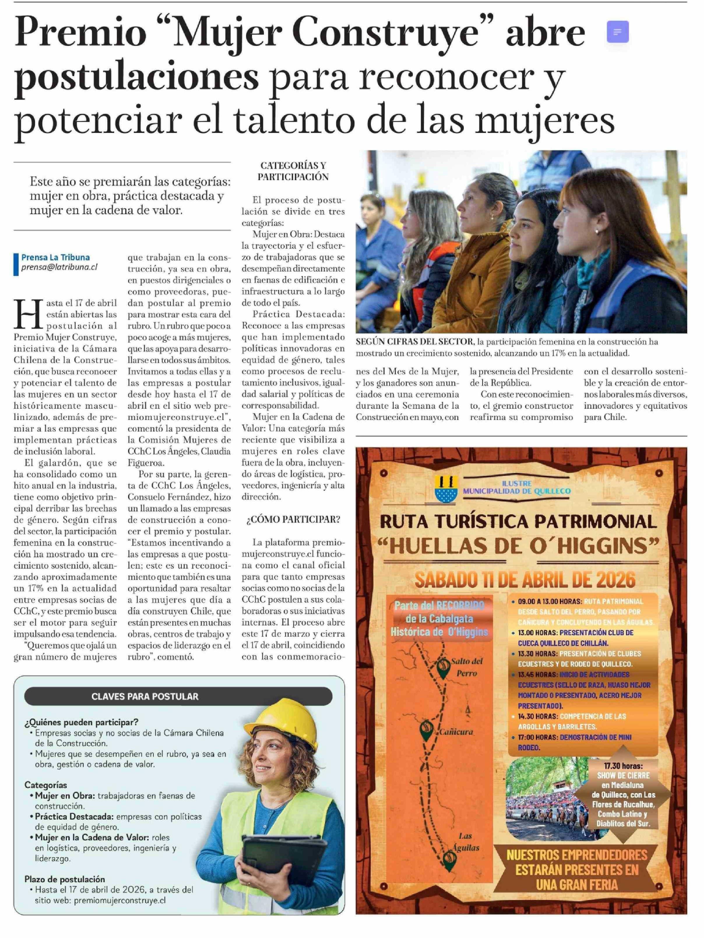 Premio "Mujer Construye" abre postulaciones para reconocer y potenciar el talento de las mujeres