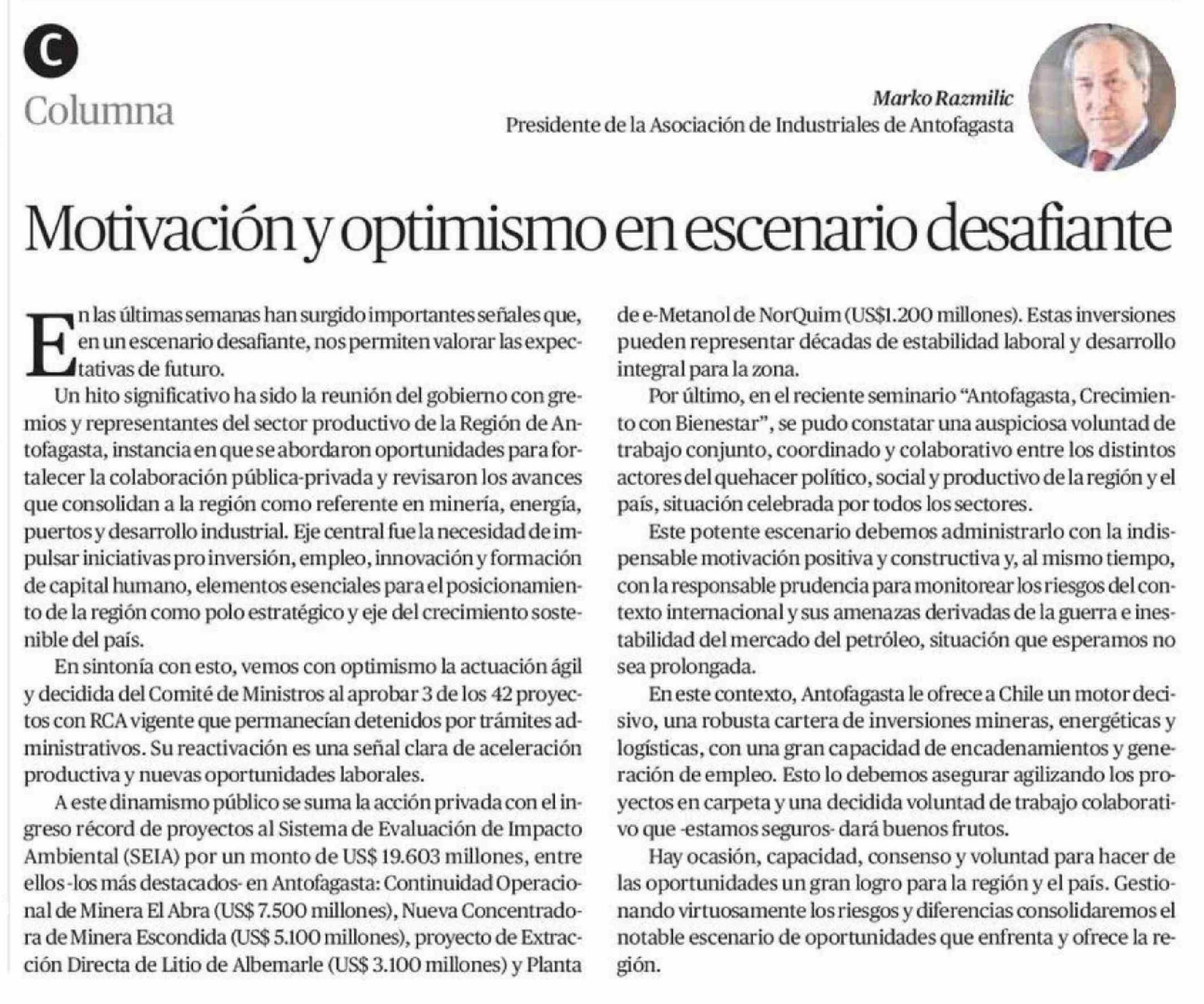 Columnas de Opinión: Motivación y optimismo en escenario desafiante