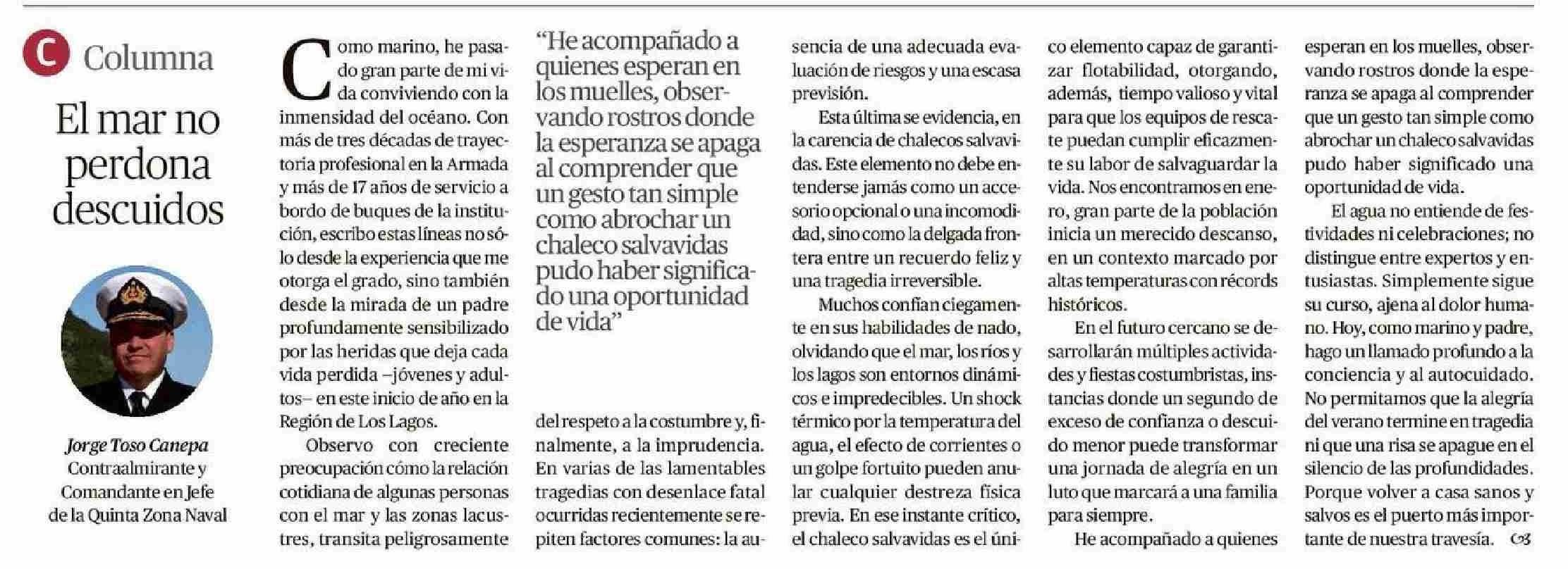 Columnas de Opinión: El mar no perdona descuidos