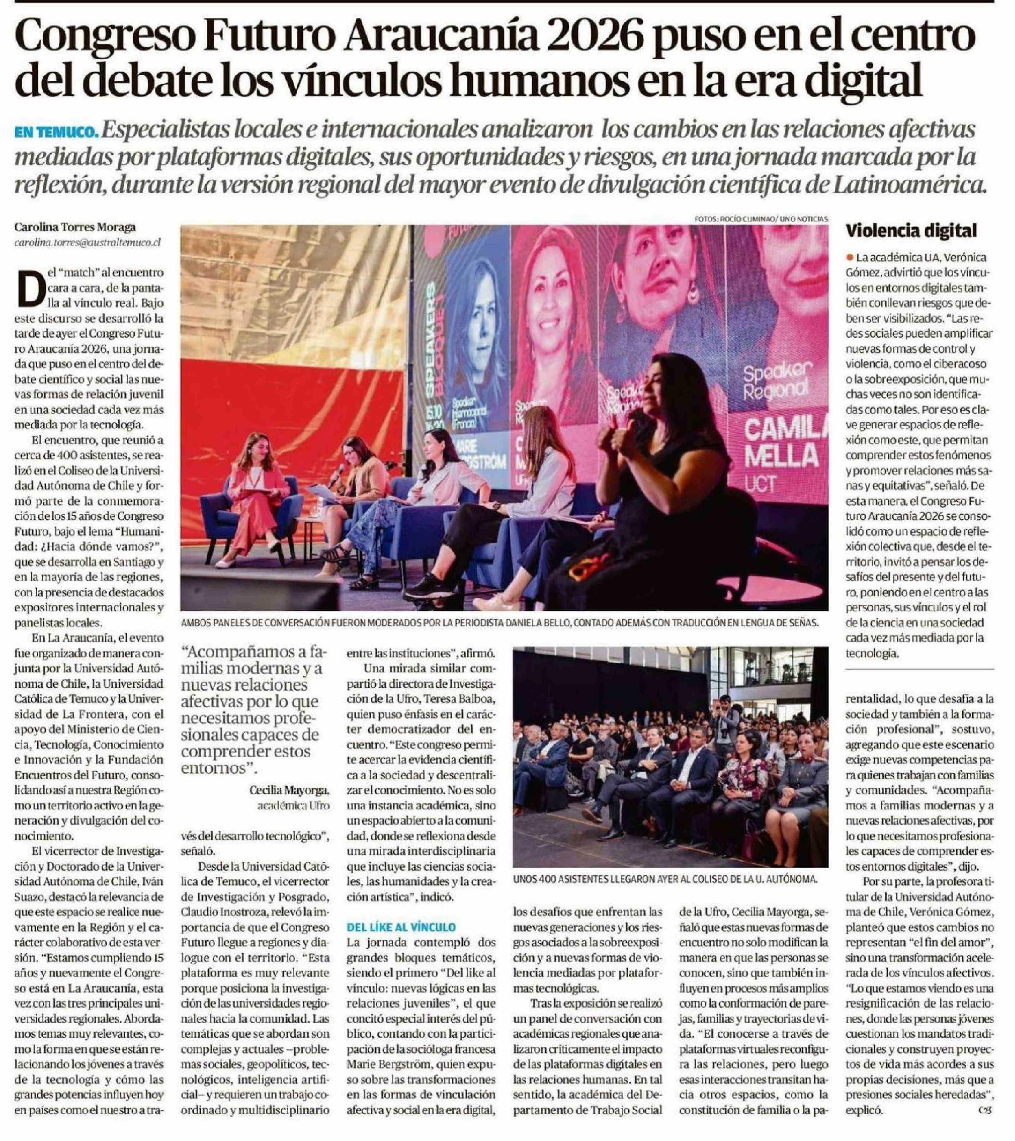 Congreso Futuro Araucanía 2026 puso en el centro del debate los vínculos humanos en la era digital