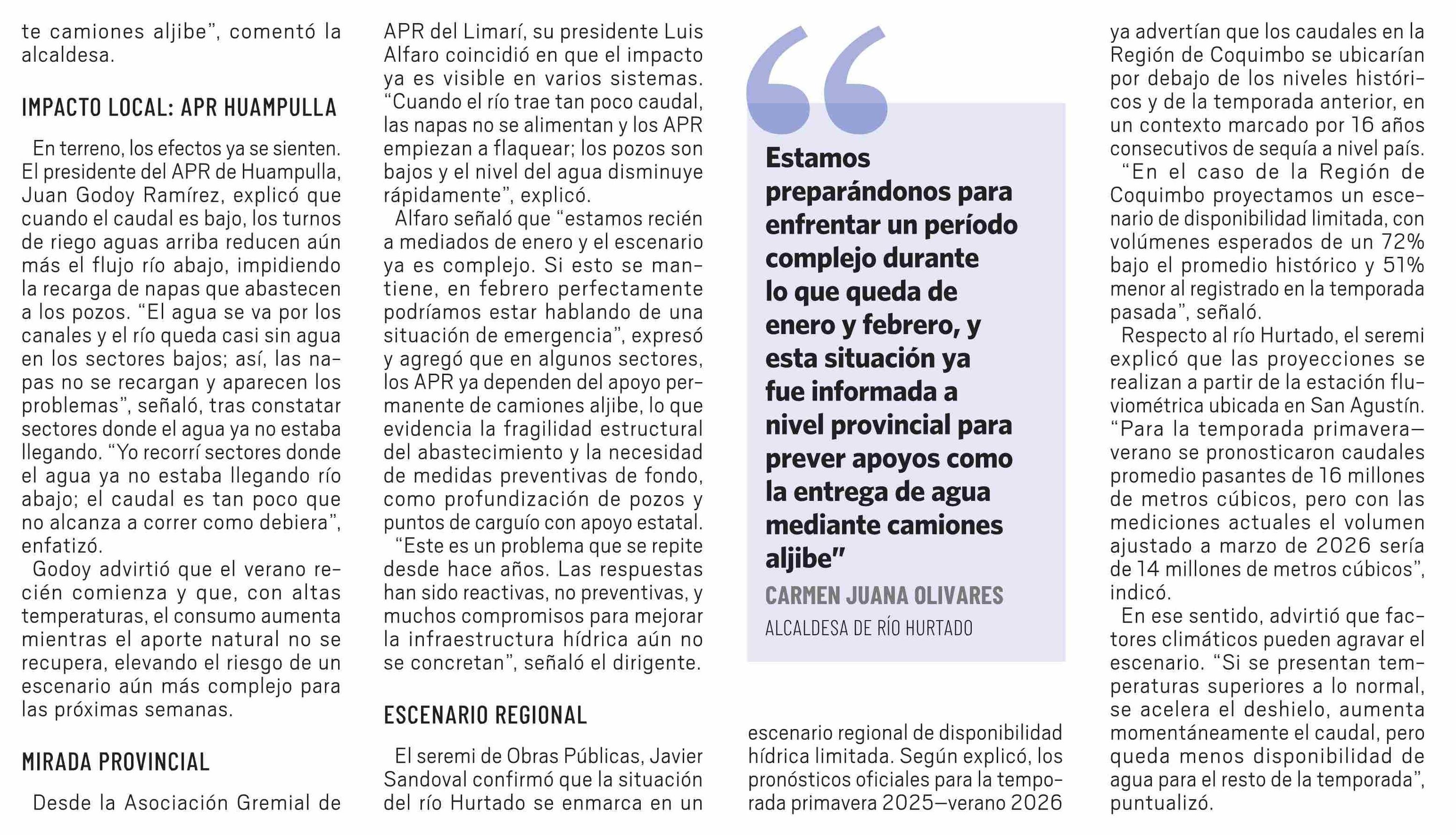 Caudal del río Hurtado cae a niveles críticos y enciende alerta por abastecimiento