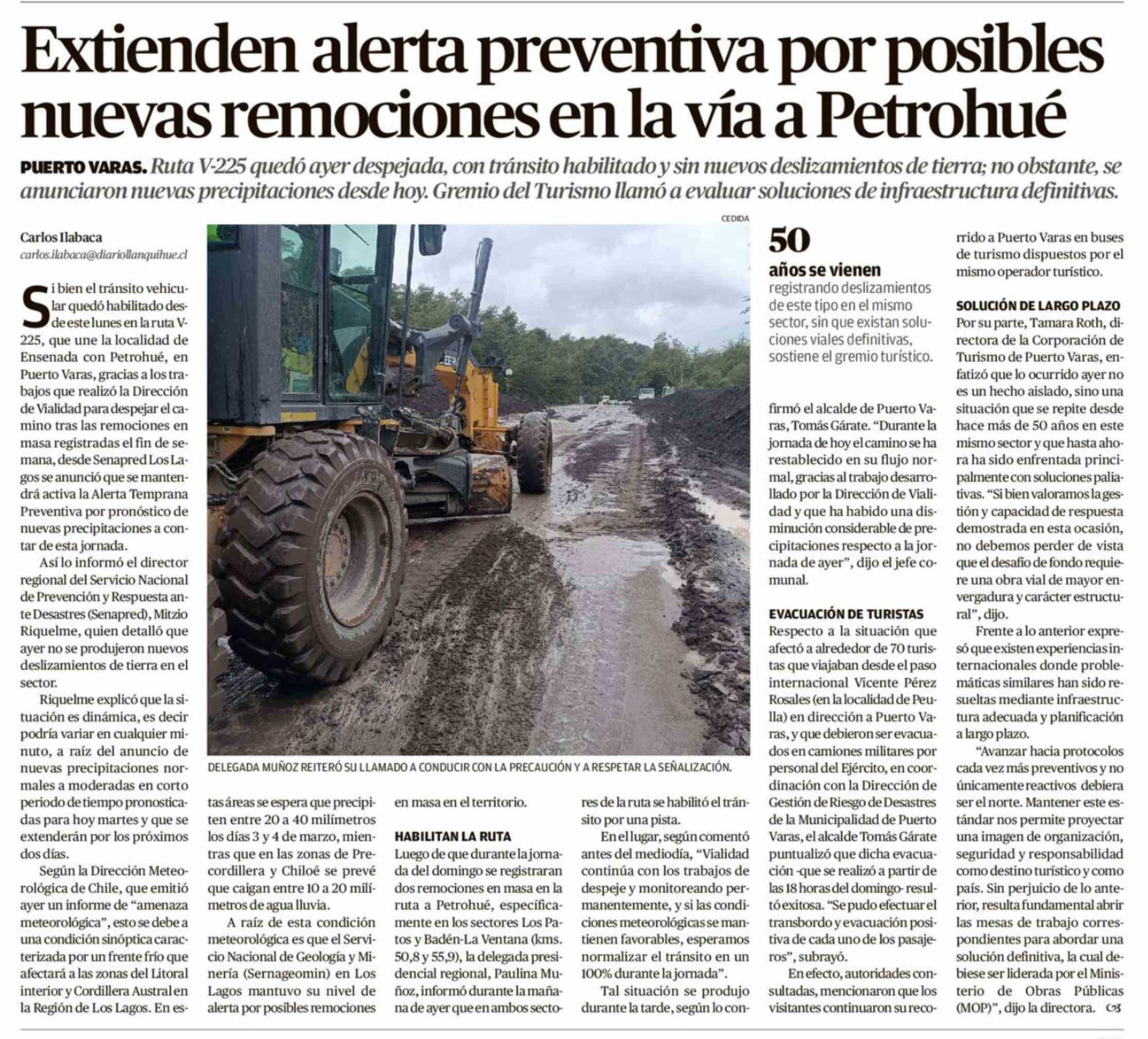 Título: Extienden alerta preventiva por posibles nuevas remociones en la vía a Petrohué
