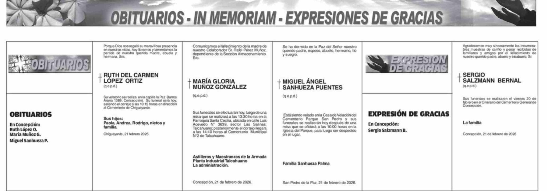OBITUARIOS - IN MEMORIAM - EXPRESIONES DE GRACIAS