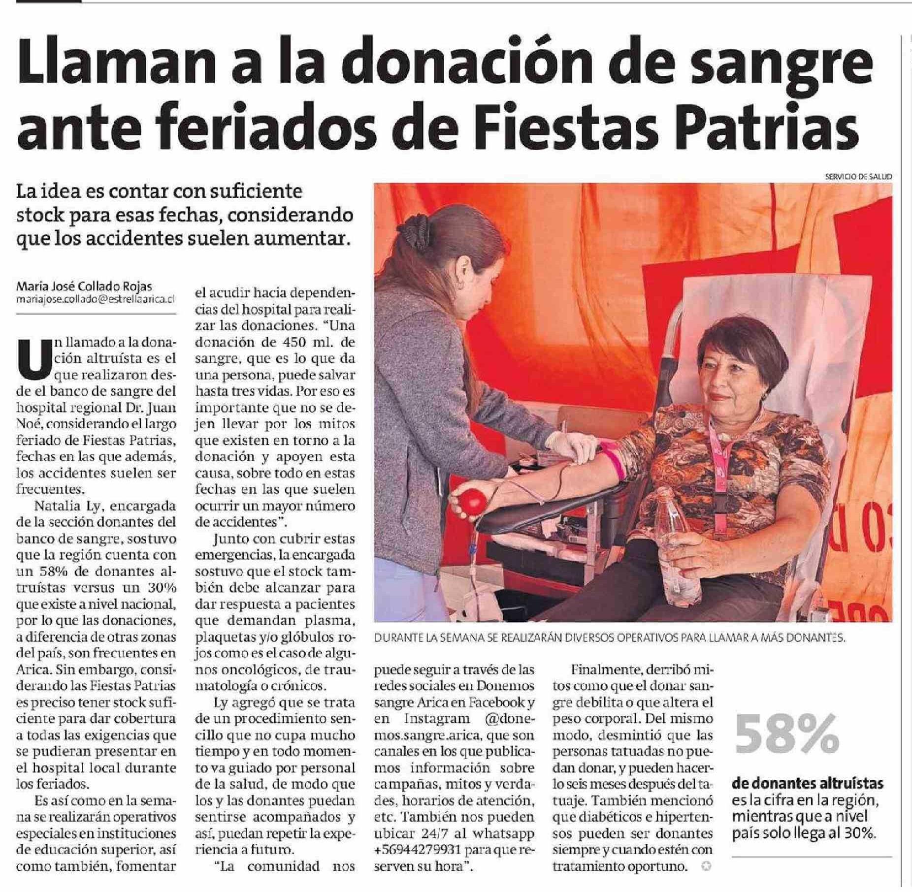 Llaman a la donación de sangre ante feriados de Fiestas Patrias