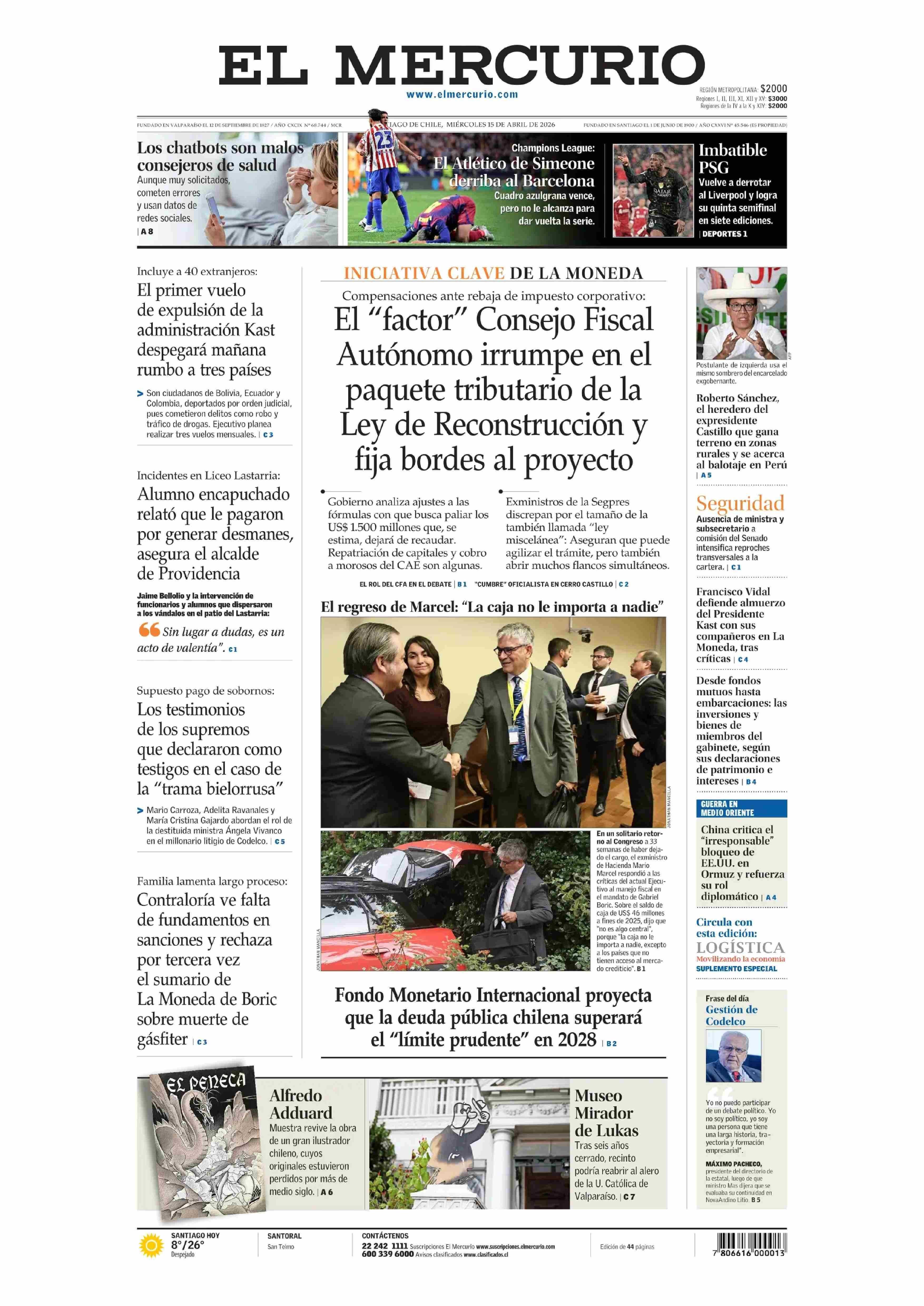 PORTADA EL MERCURIO (A) CHILE
