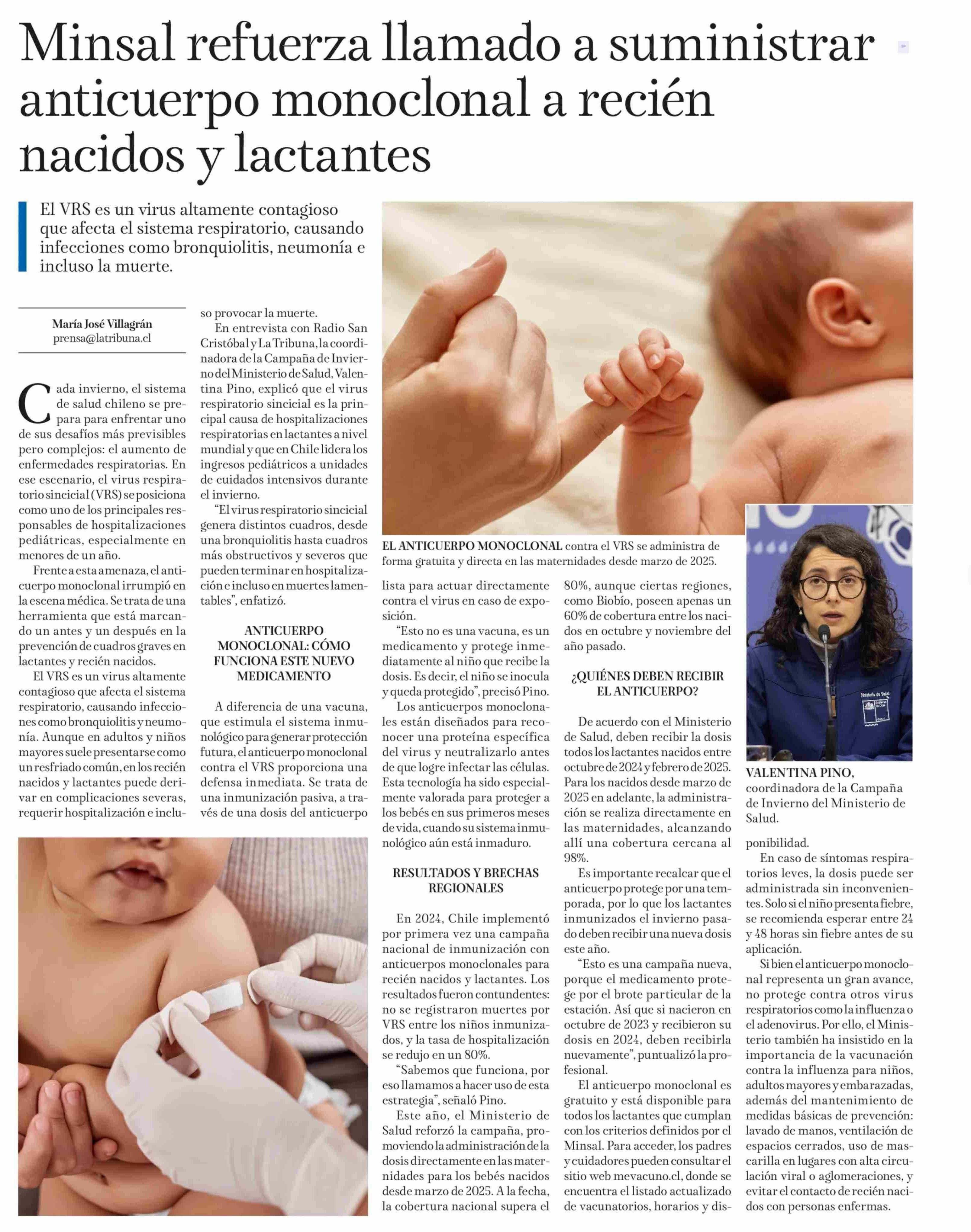 Minsal refuerza llamado a suministrar anticuerpo monoclonal a recién nacidos y lactantes