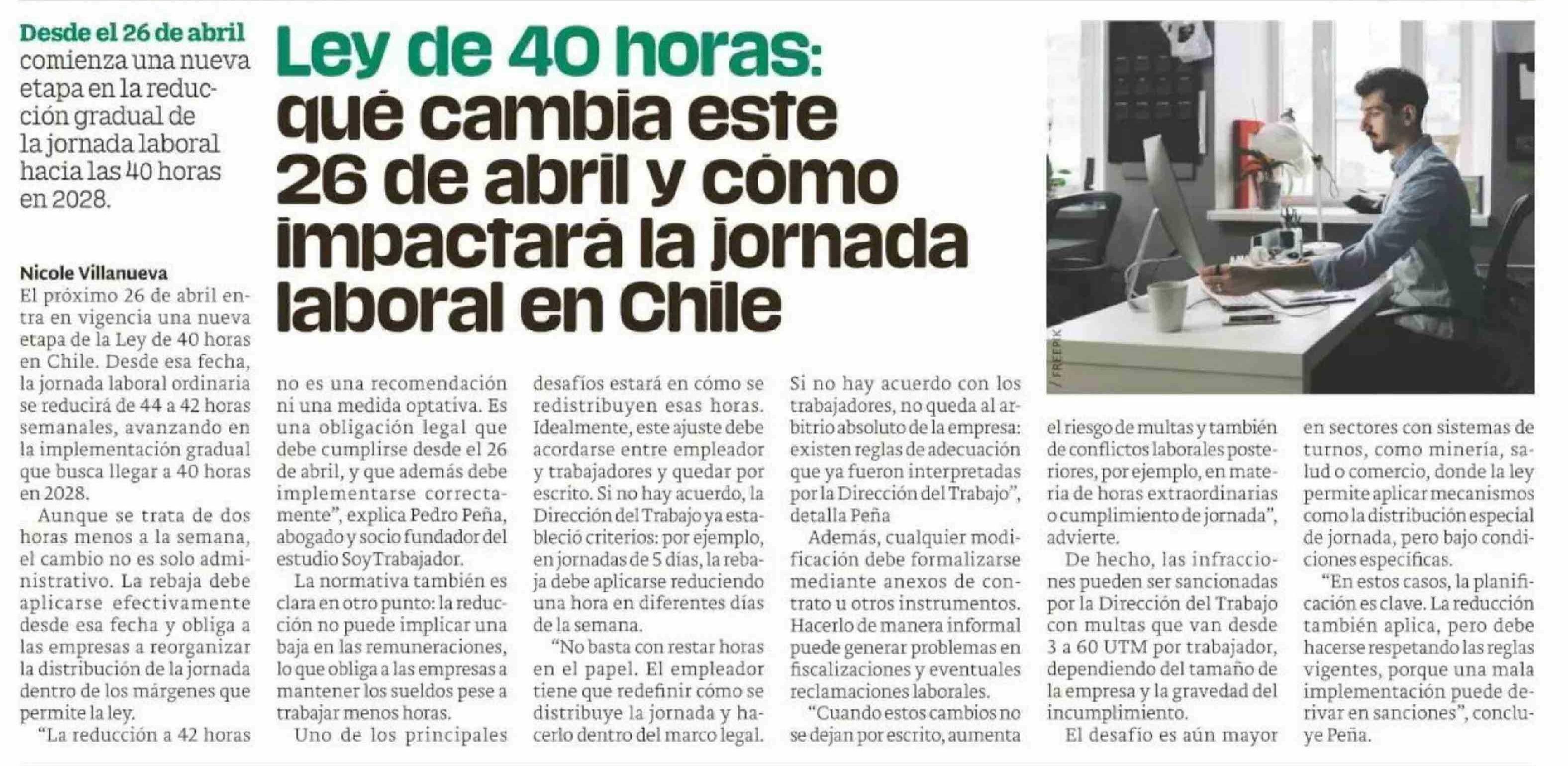 Ley de 40 horas: que cambia este 26 de abril y como impactara la jornada laboral en Chile