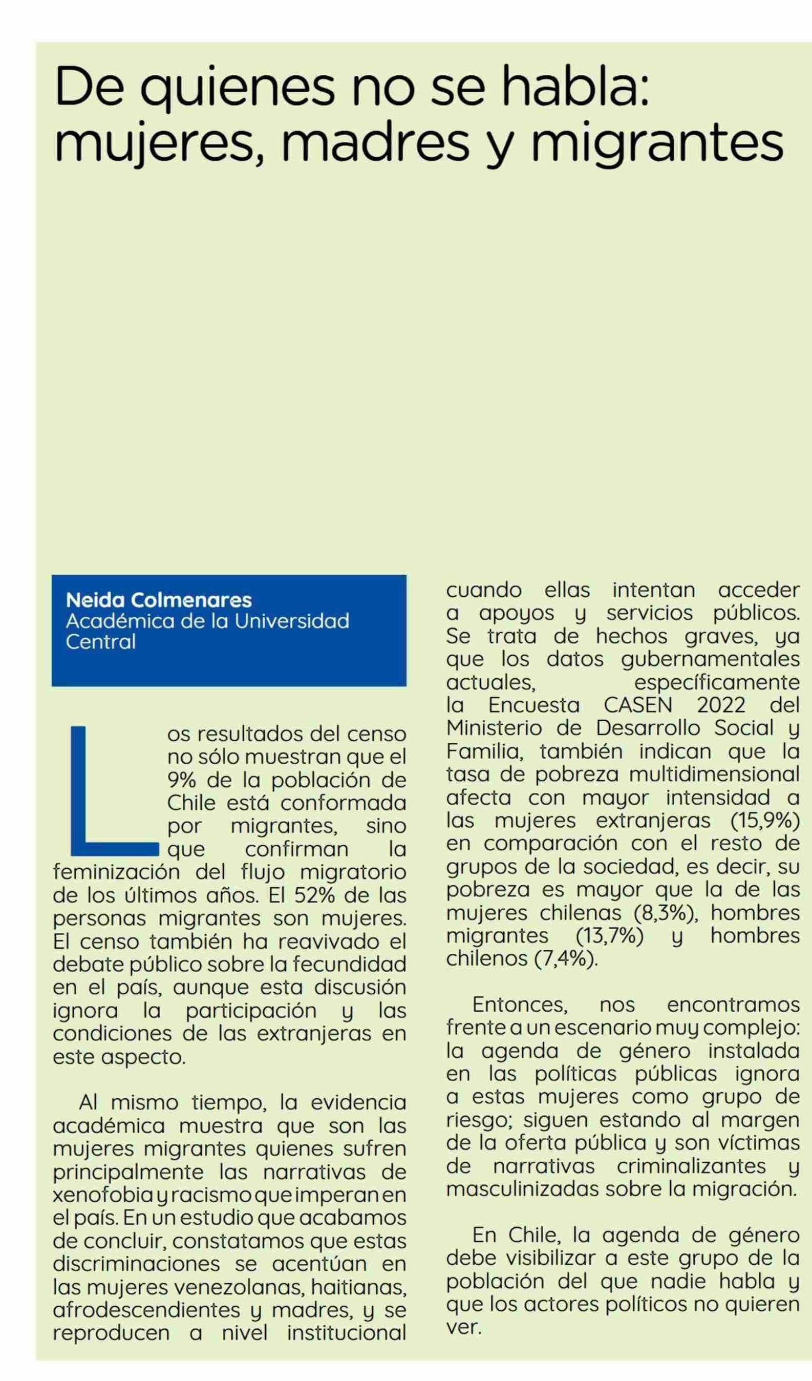 COLUMNAS DE OPINIÓN: mujeres, madres y migrantes