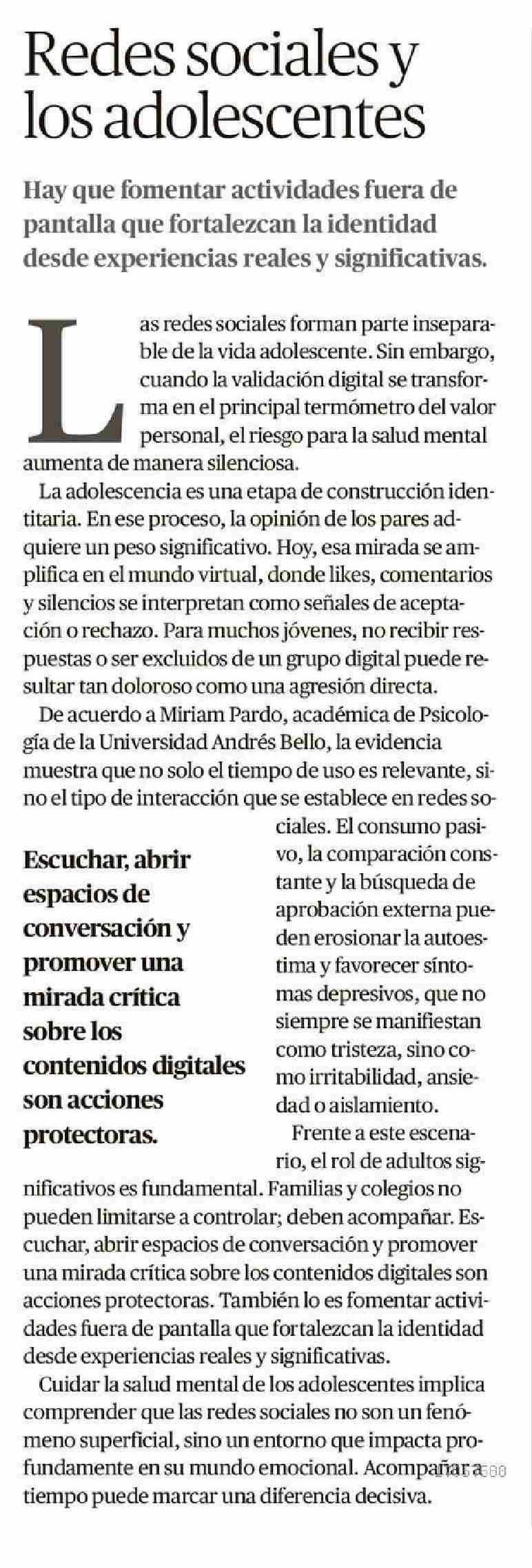 Título: EDITORIAL: Redes sociales y los adolescentes
