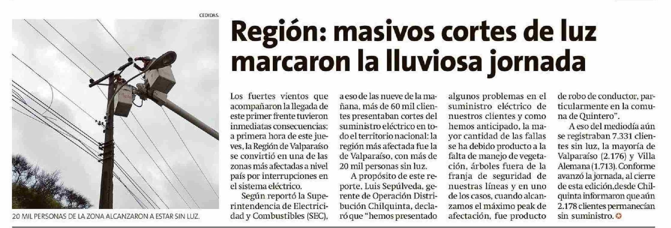 Región: masivos cortes de luz marcaron la lluviosa jornada