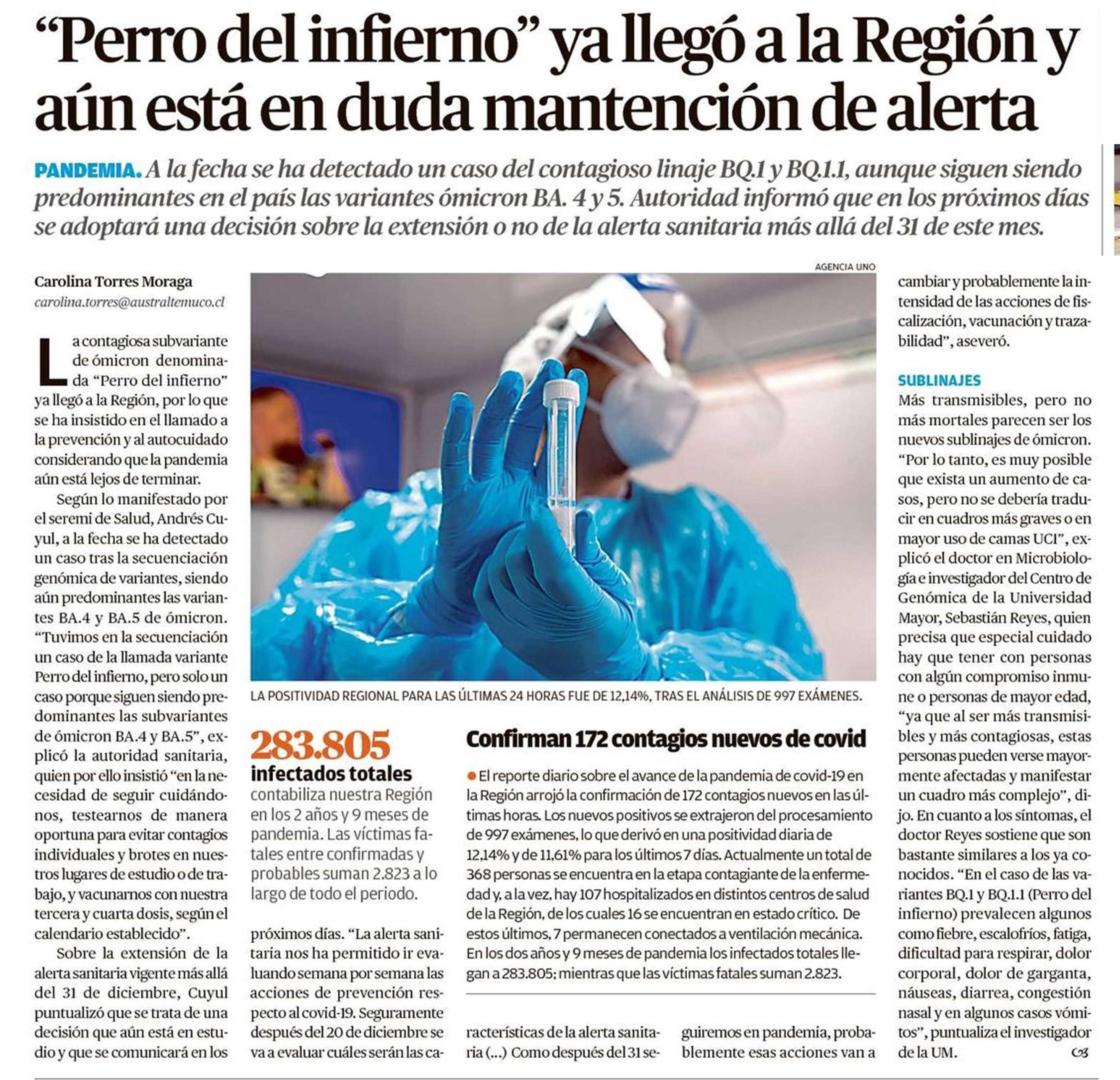 “Perro del infierno” ya llegó a la Región y aún está en duda mantención de alerta