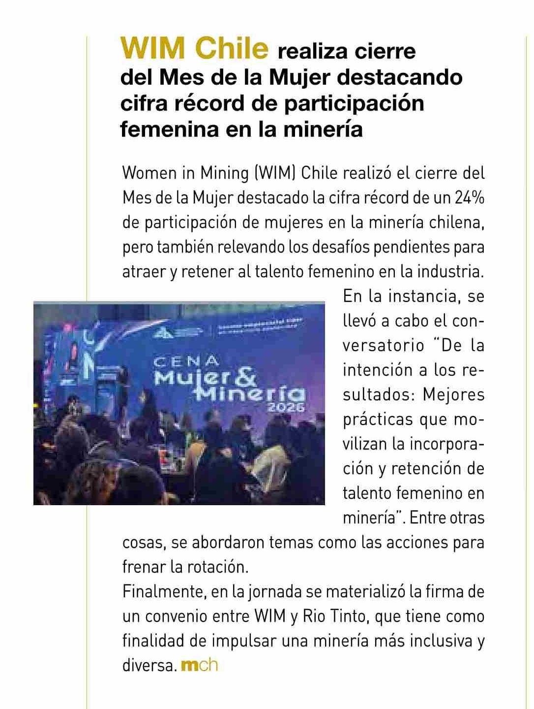 Título: WIM Chile realiza cierre del Mes de la Mujer destacando cifra récord de participación femenina en la minería