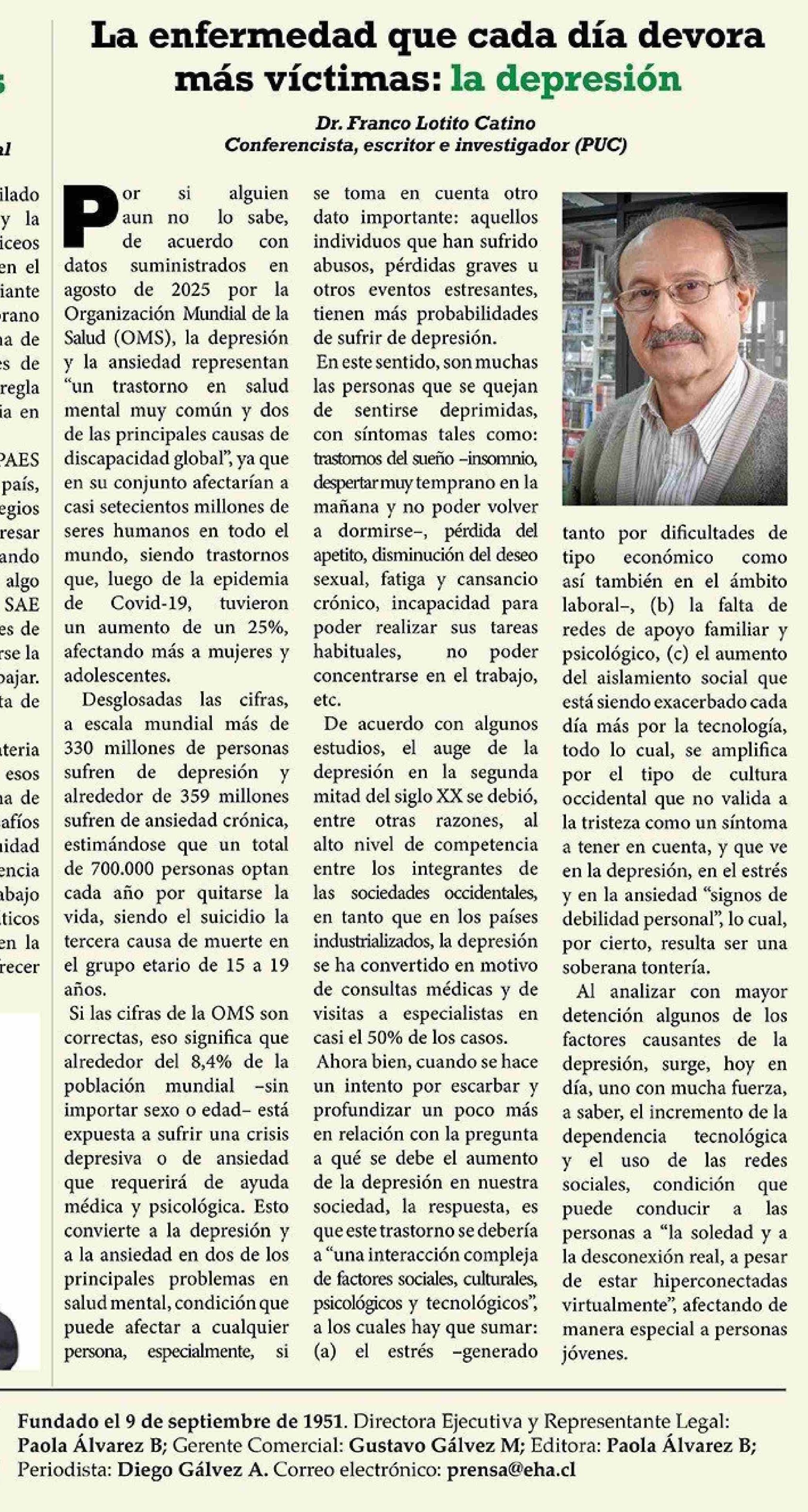 Columnas de Opinión: La enfermedad que cada día devora más víctimas: la depresión
