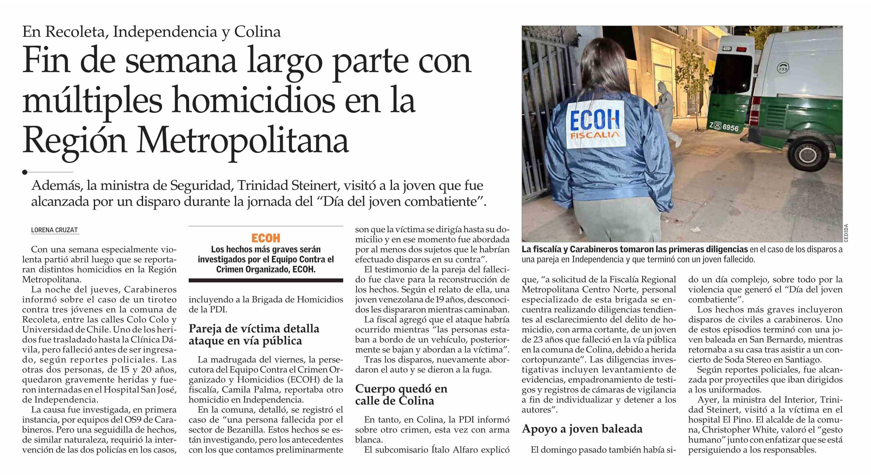 Fin de semana largo parte con múltiples homicidios en la Región Metropolitana