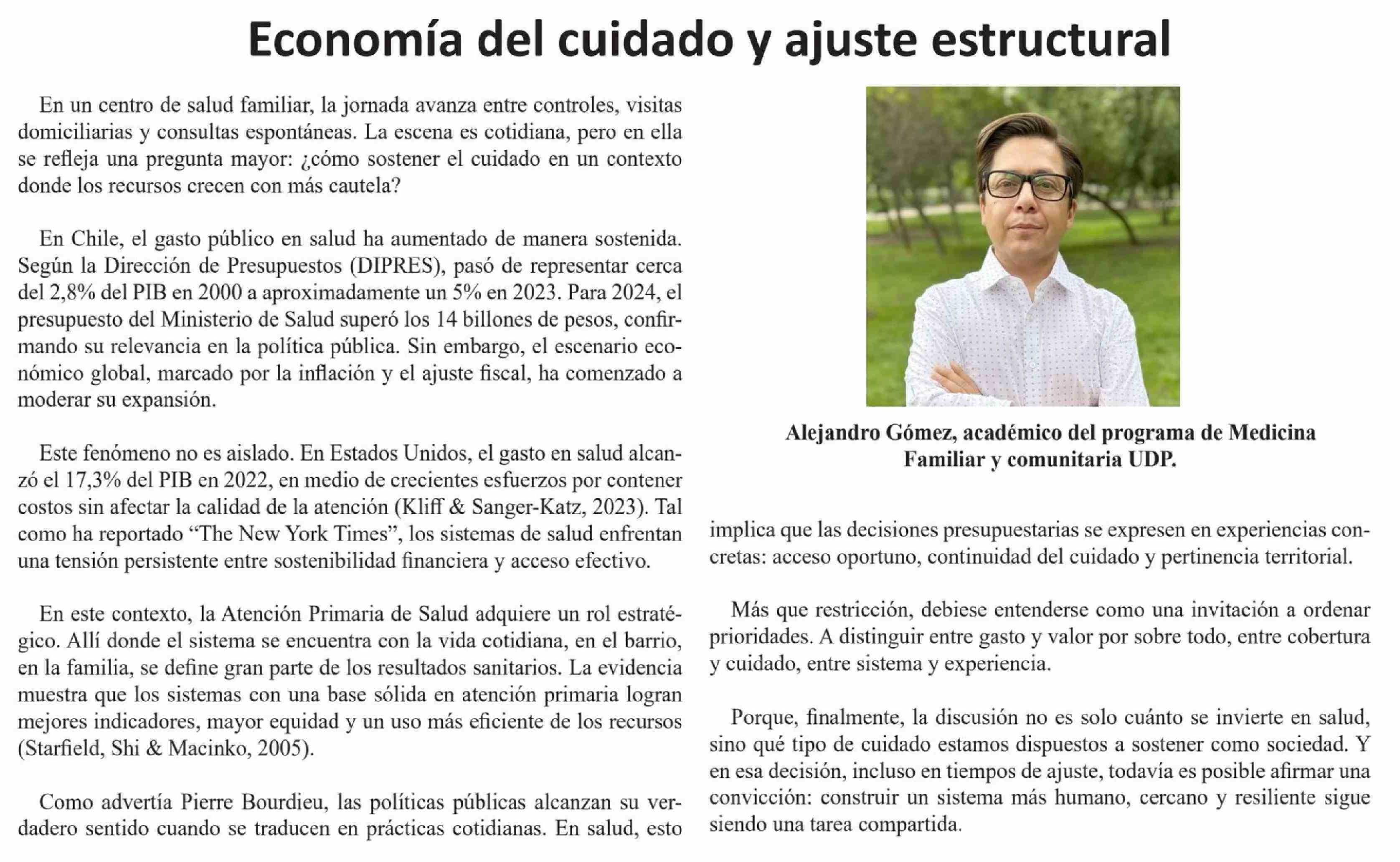 Título: Columnas de Opinión: Economía del cuidado y ajuste estructural