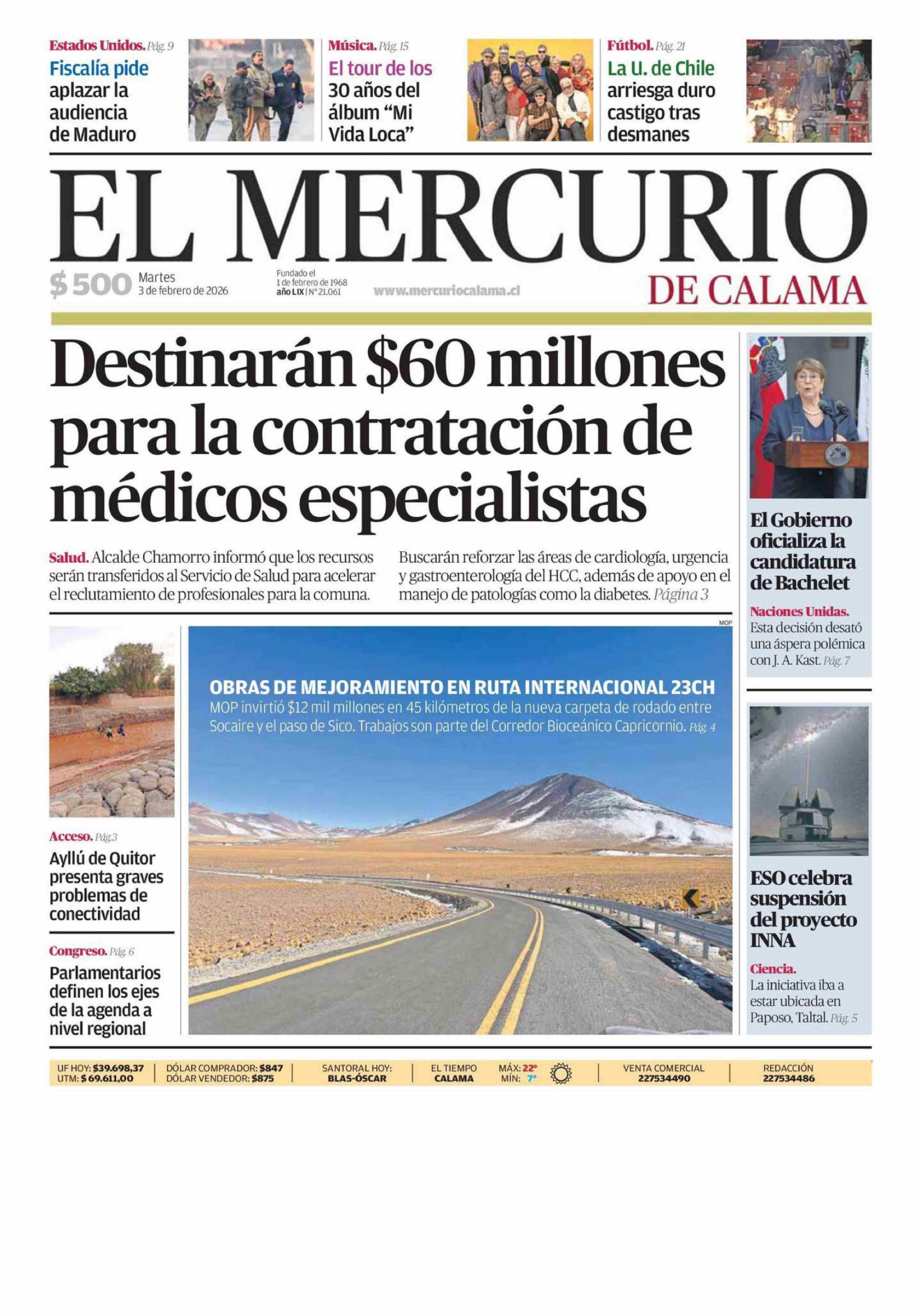 PORTADA EL MERCURIO DE CALAMA CHILE