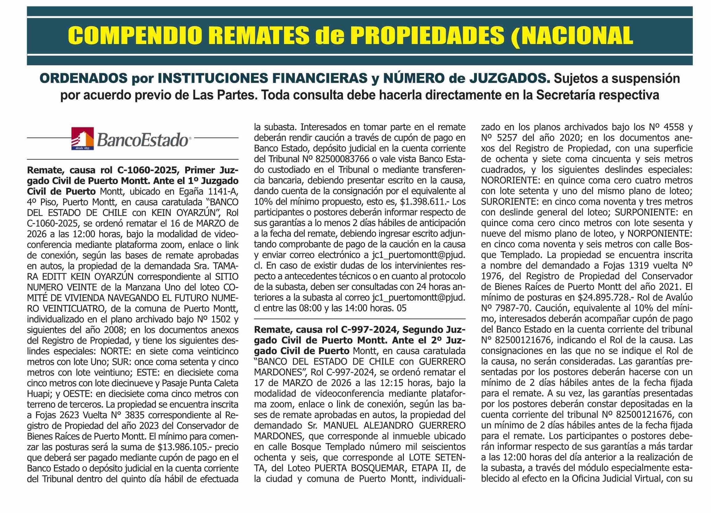 COMPENDIO REMATES de PROPIEDADES (NACIONAL