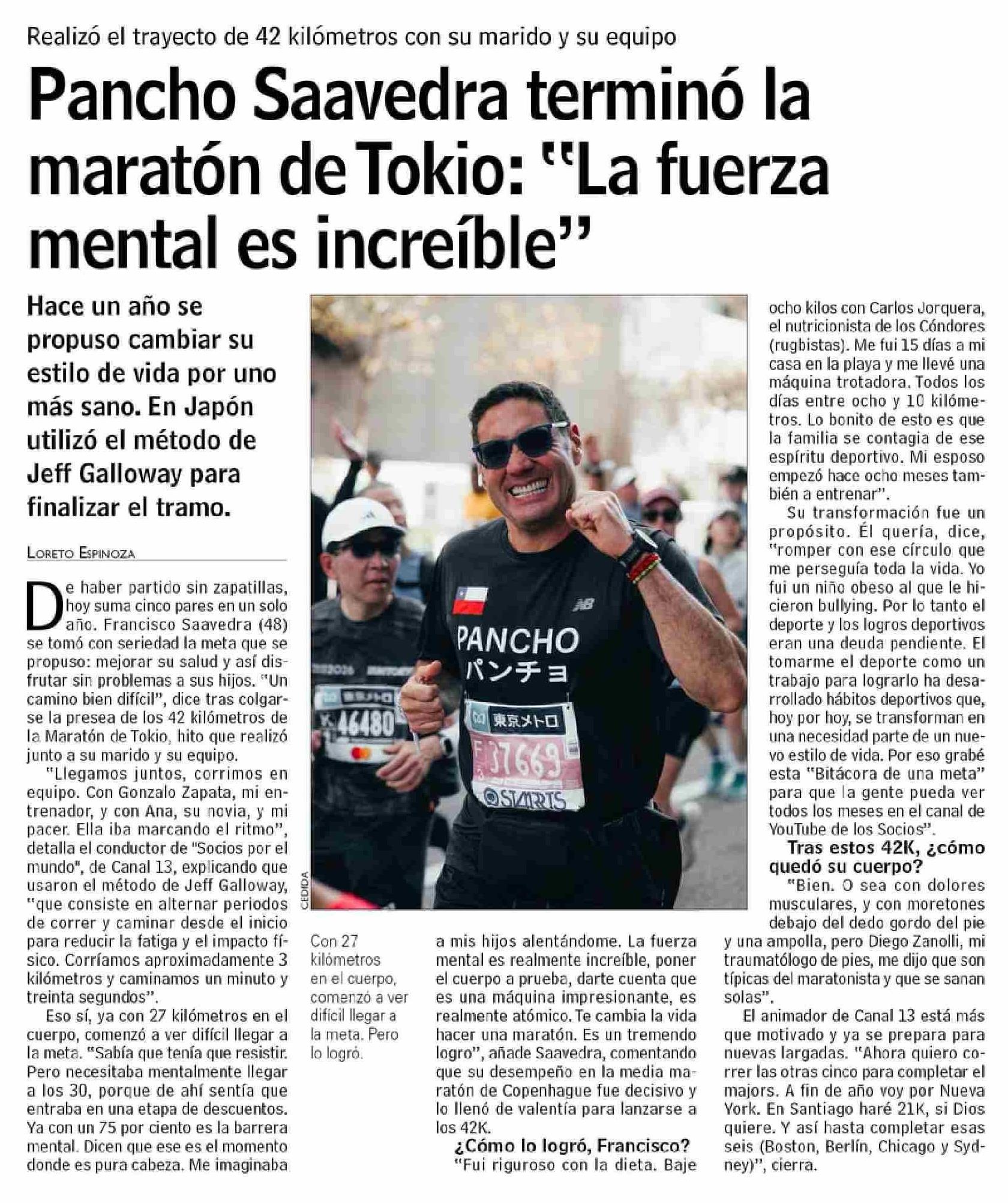 Pancho Saavedra terminó la maratón de Tokio: "La fuerza mental es increíble"
