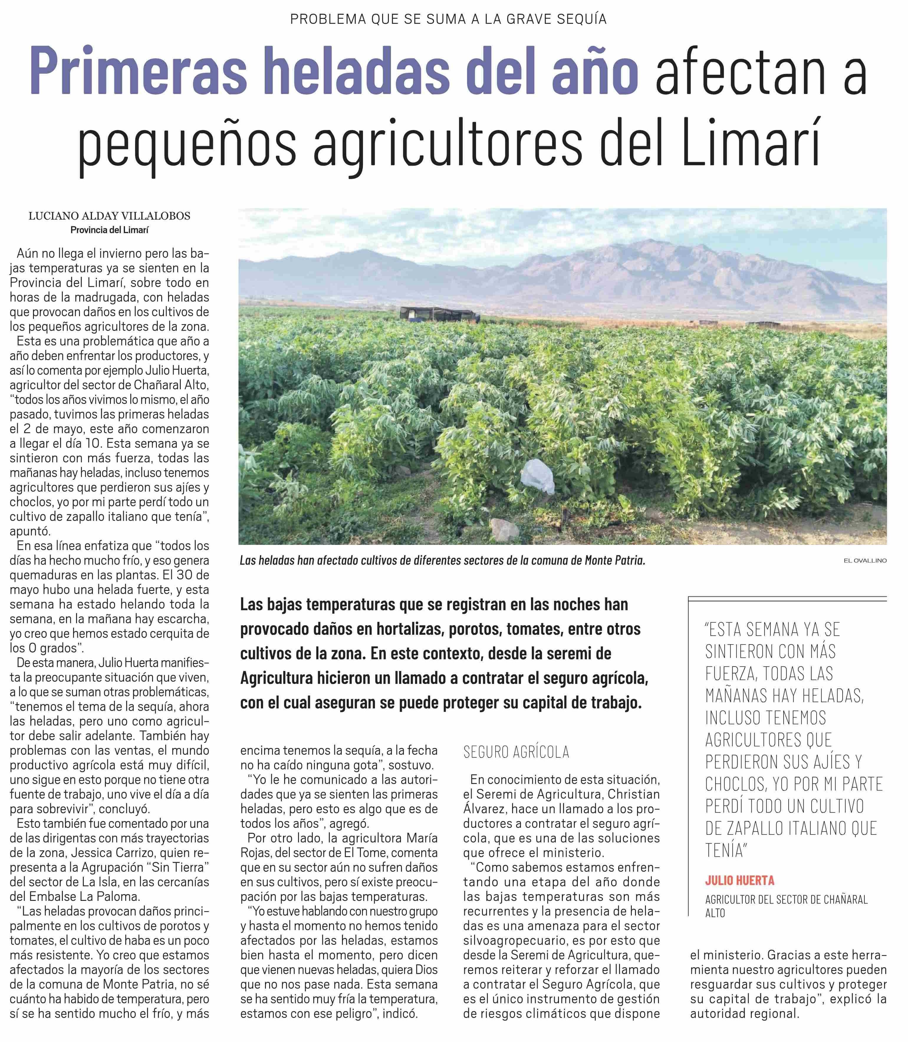 Primeras heladas del año afectan a pequeños agricultores del Limarí