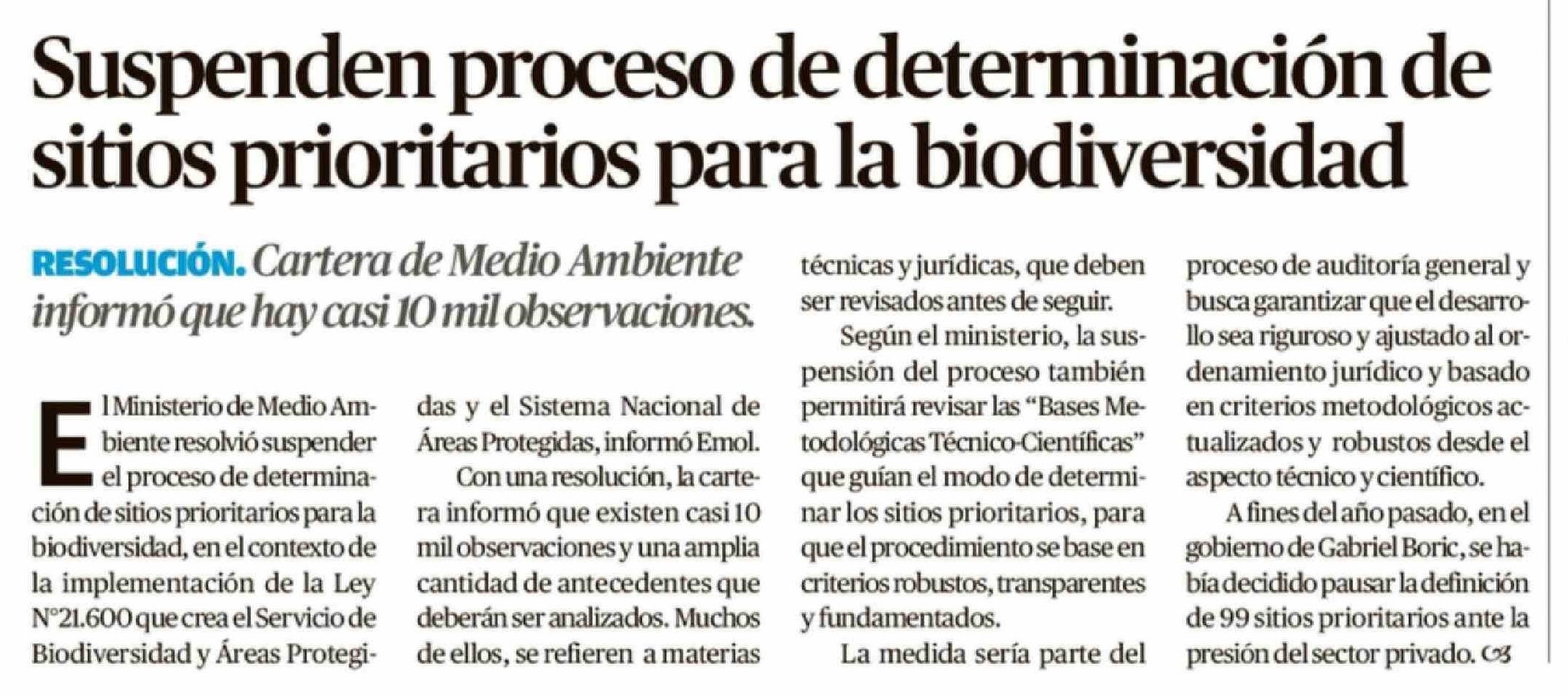 Suspenden proceso de determinación de sitios prioritarios para la biodiversidad