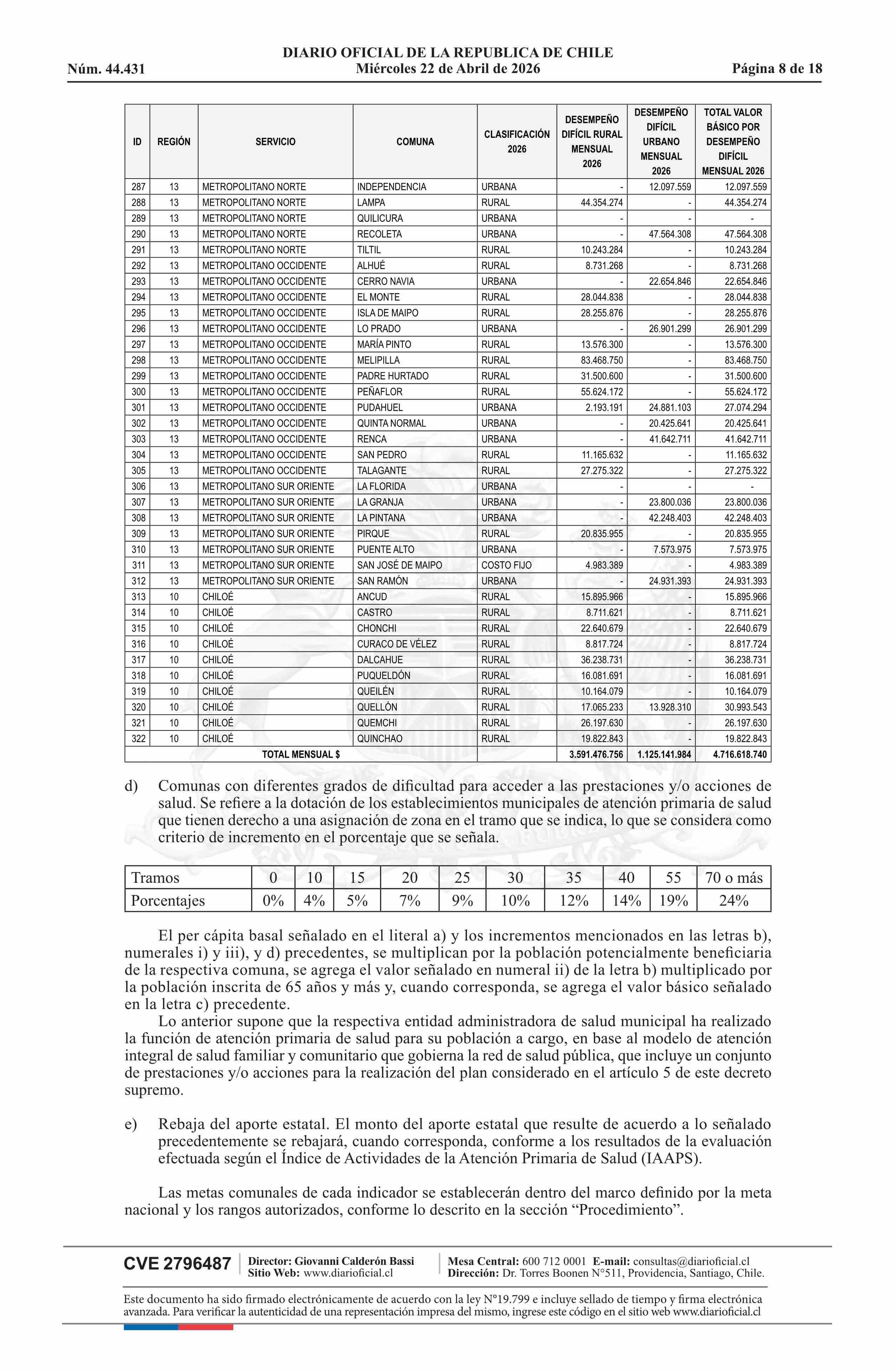 | Título: | Decreto número 30, de 2025.- Determina aporte estatal a las municipalidades que indica, para sus entidades administradoras de salud municipal, año 2026 |