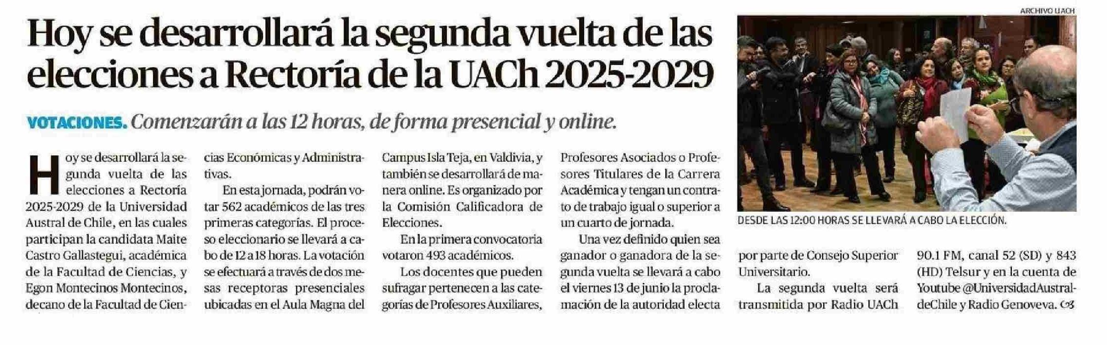 Título: Hoy se desarrollará la segunda vuelta de las elecciones a Rectoría de la UACh 20252029