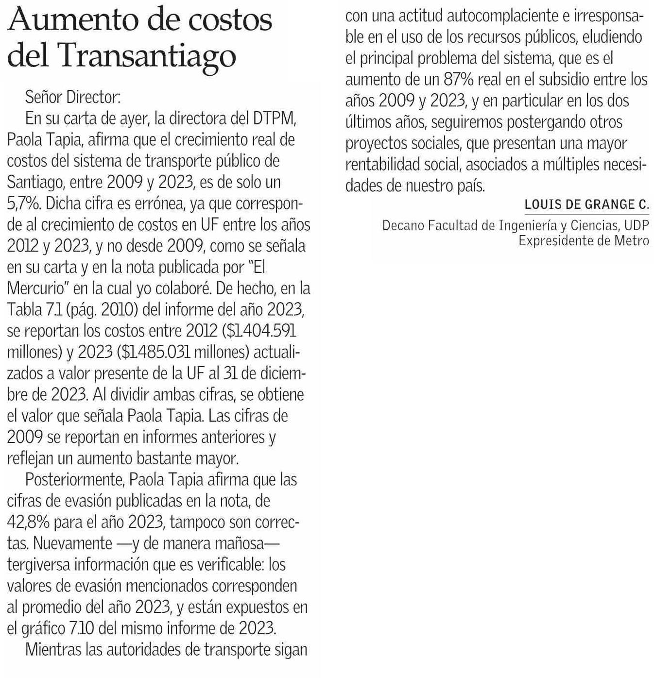 Aumento de costos del Transantiago